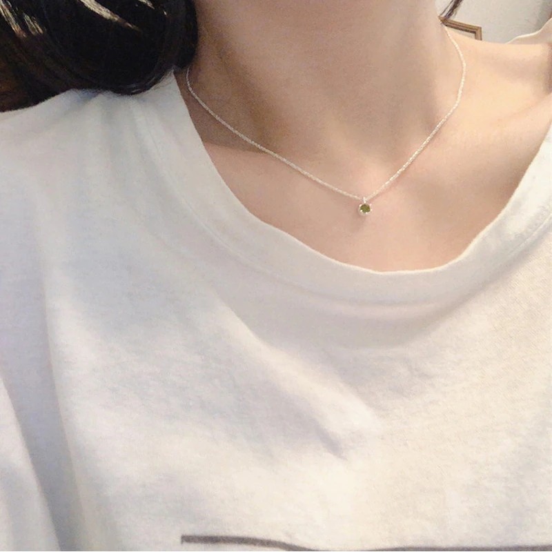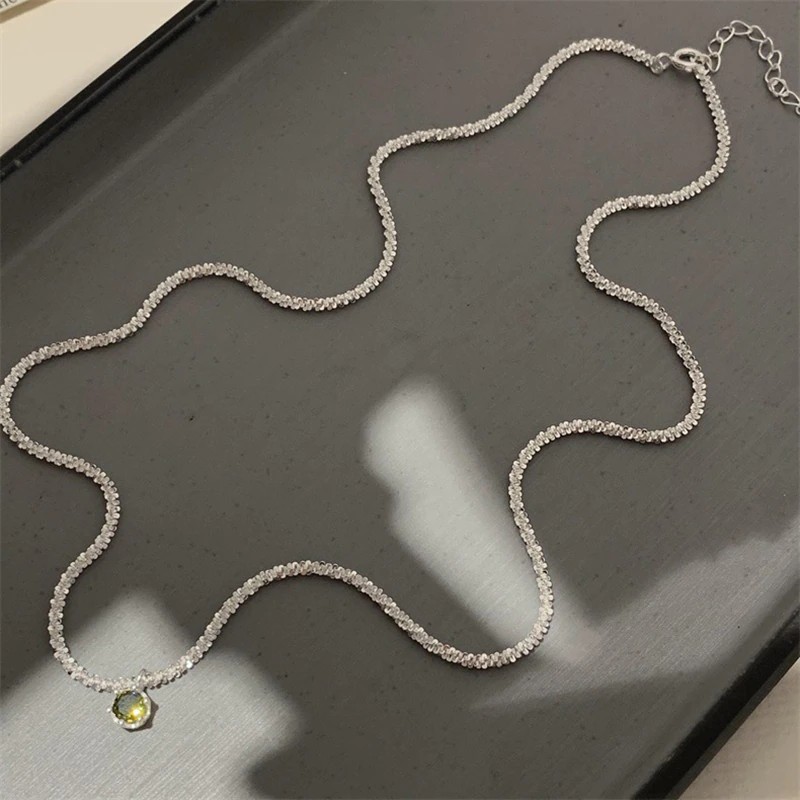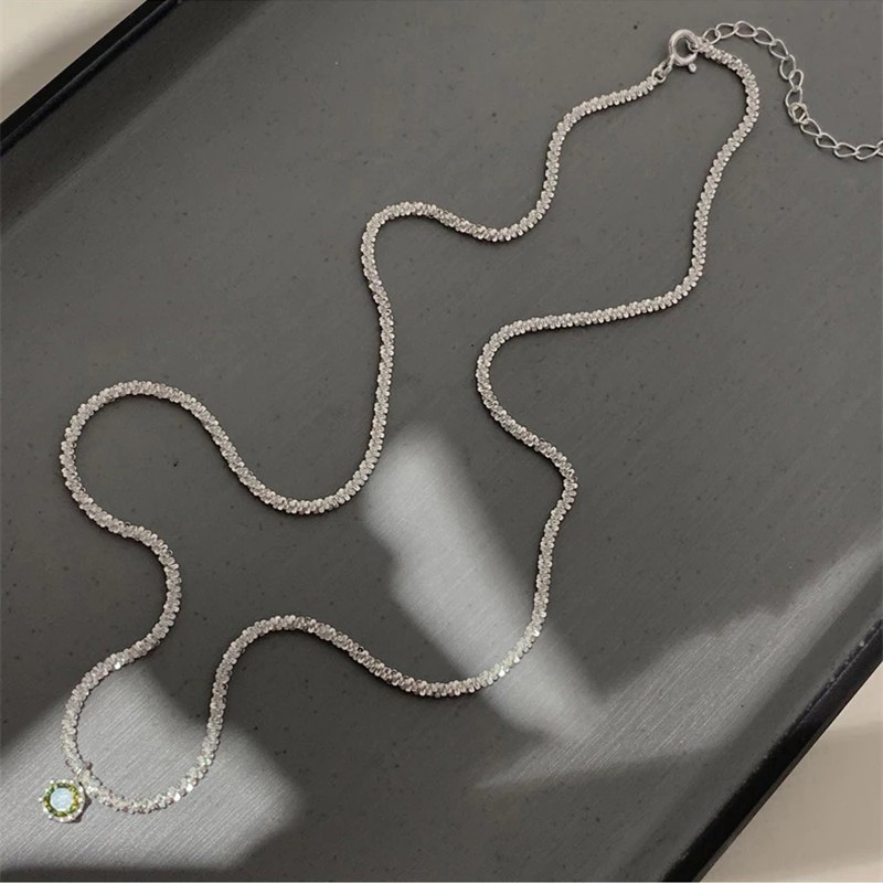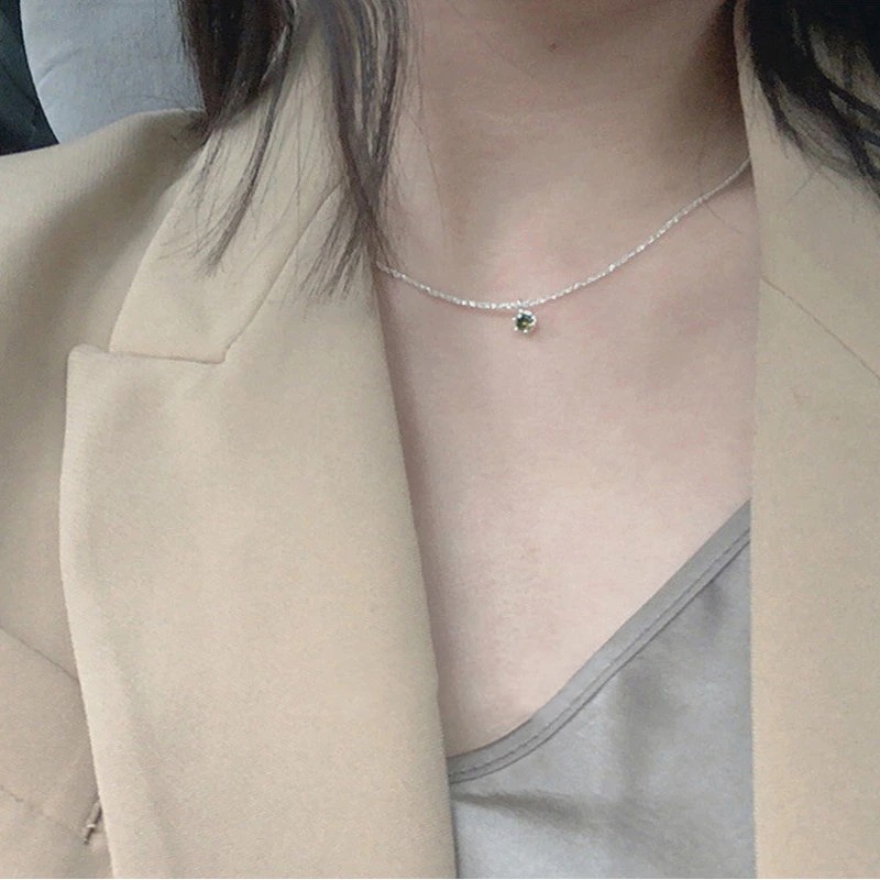 Newest Jewelry 925 Sterling Silver Clavicle Chain Choker Necklace Green Diamond Gypsophila Necklace For Women