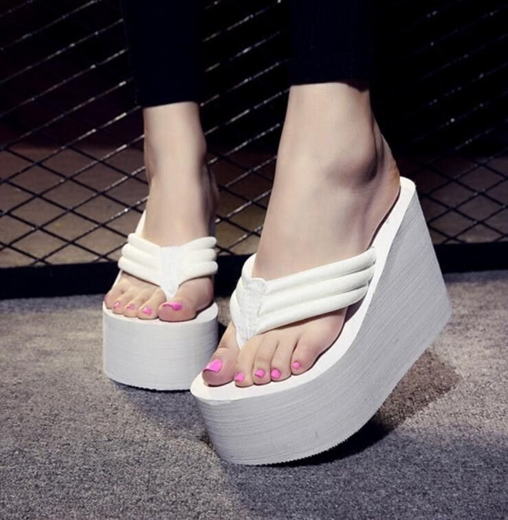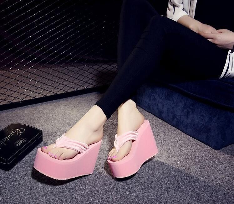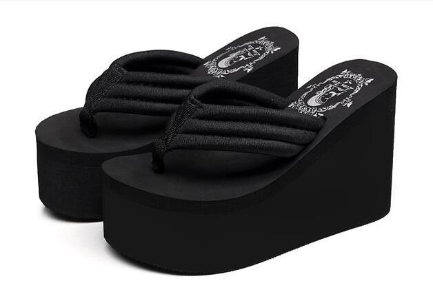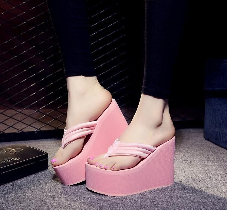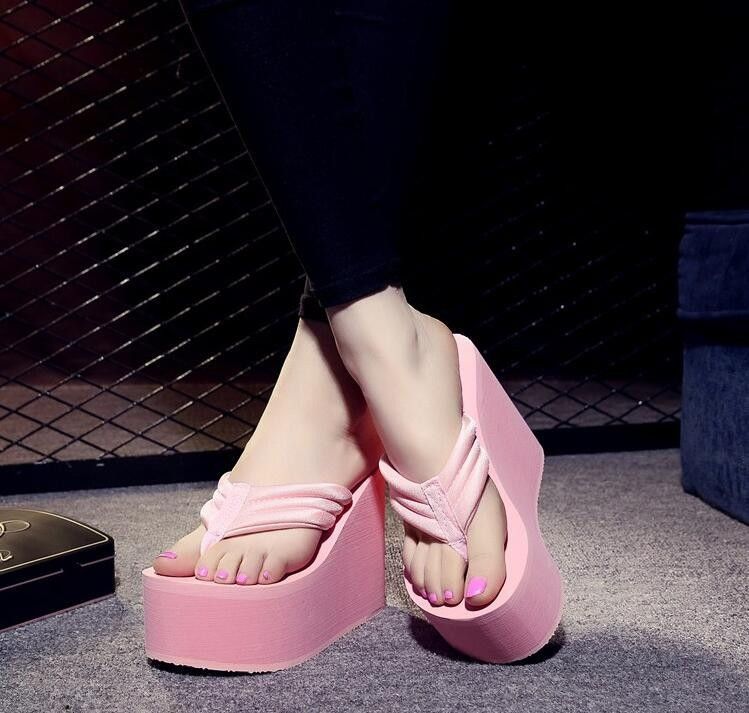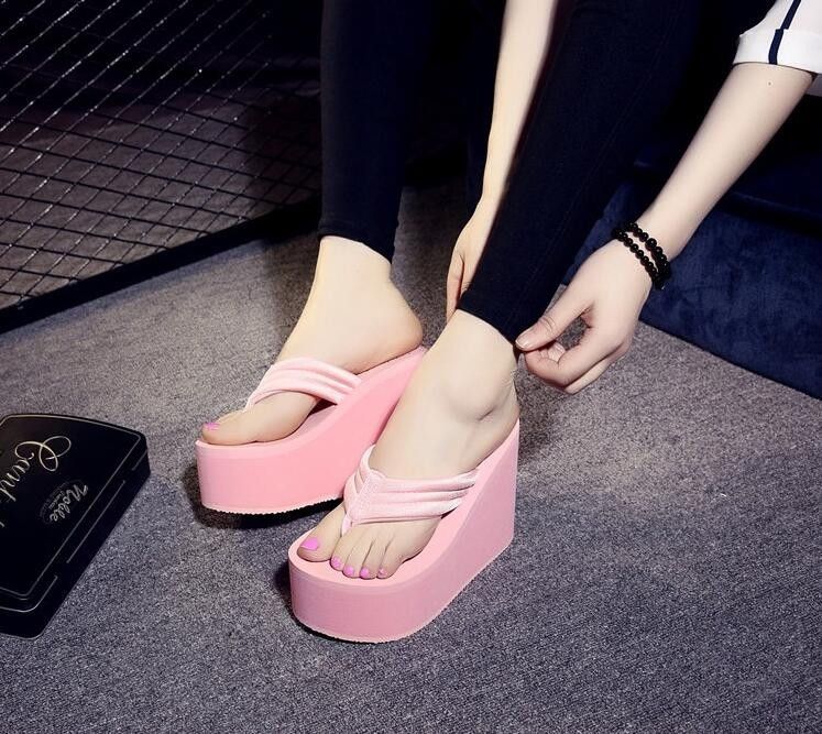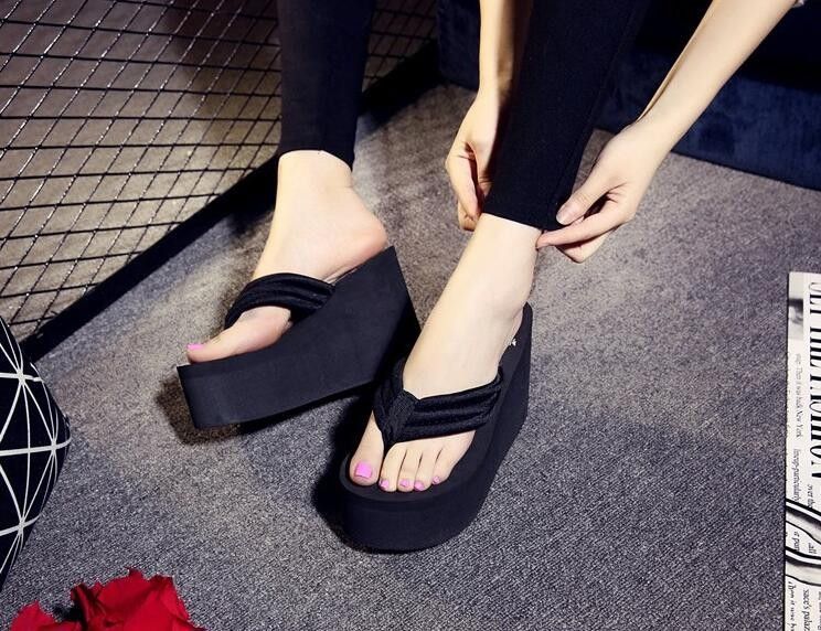 Newest New Arrival Women Chunky Sandals High Heels Wedges Flip Flops Lady Pure Color Water Taiwan Summer Shoes Plus Size 40 41