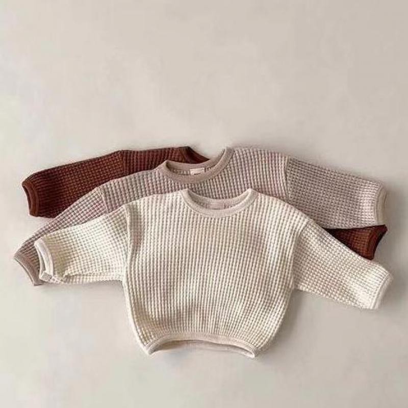 Newest New Autumn Cotton Baby Long Sleeve T Shirts Kids Waffle Shirts Solid Boys Bottoming Infant Girl Tops Toddler Clothes 0-24M