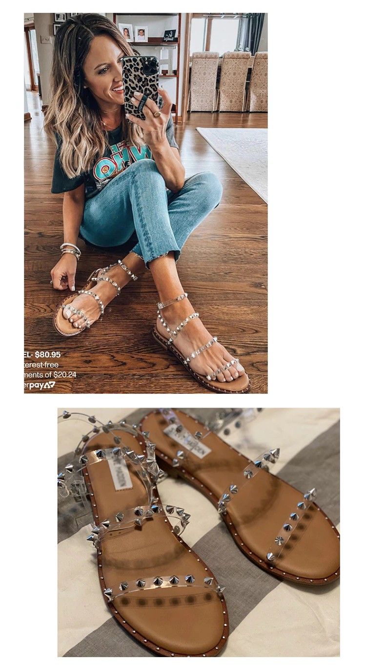 Newest New Rivet Strong Flat Women Sandals Fashion Shoes Lightweight Non-Slip Sabot Women'S Summer Designer Studded Sandals