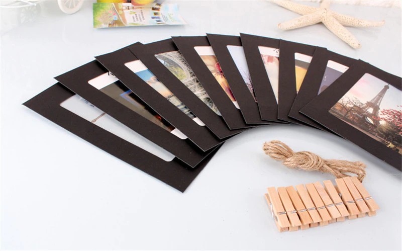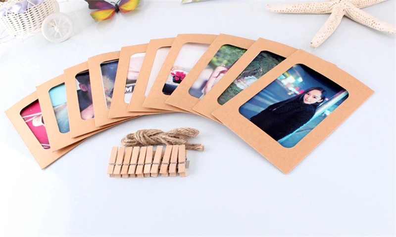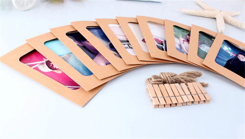 10 Pcs Combinatie Papier Frame Met Clips Diy Kraftpapier Fotolijst Opknoping Muur Foto Album 2M Touw Thuis Decoratie Craft