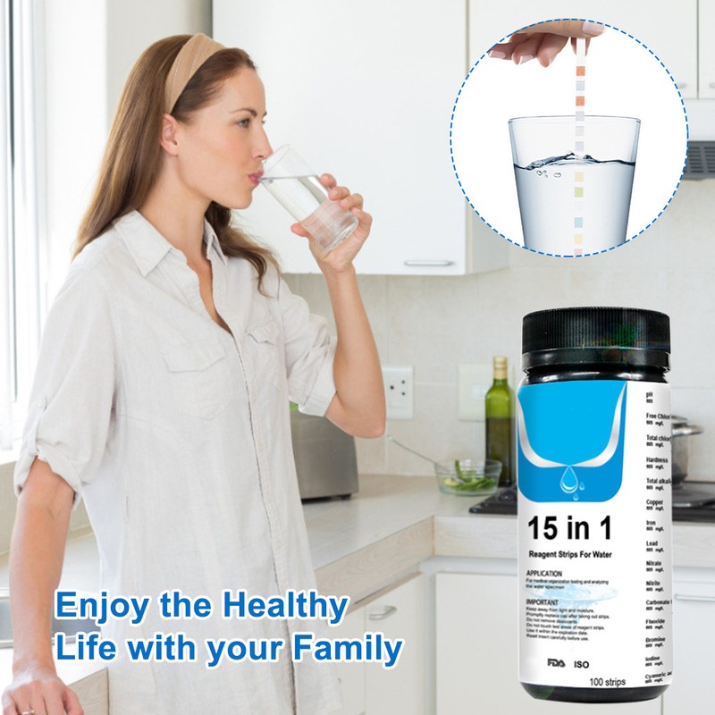 Draagbaar Ontwerp: De doos bevat 100 stuks van teststrips, en de water kwaliteit moet wekelijks getest, en de drinkwater teststrips zijn te gebruiken voor beginners.