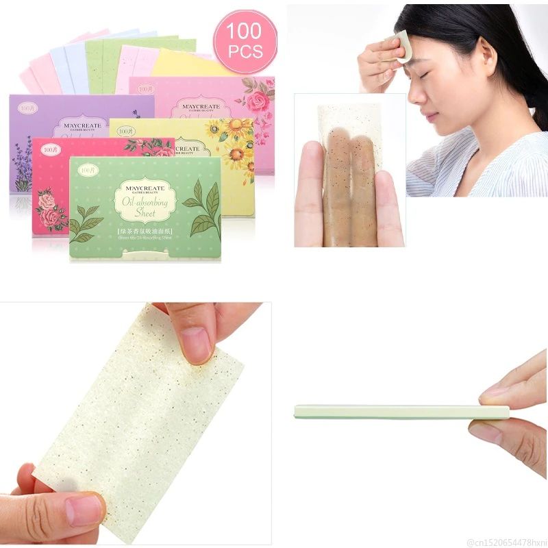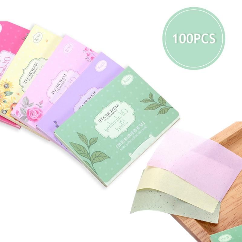 100Sheets/Bag Olie Vloeipapier Lavendel Groene Thee Kamille Olie Controle Lakens Gezicht Reinigen Absorberende Papier Make-Up Tool Tslm1