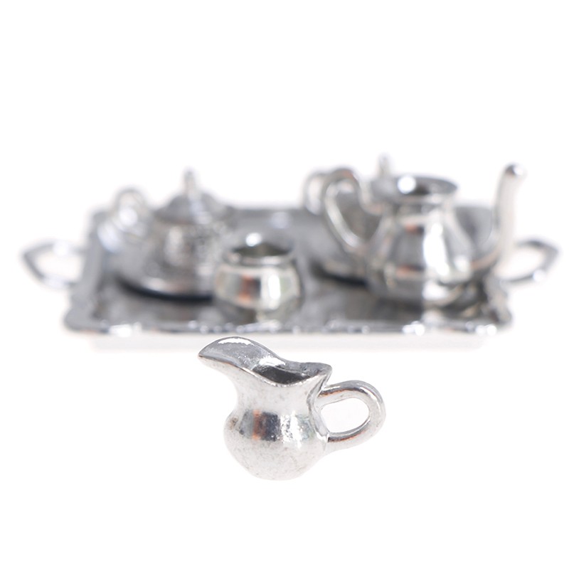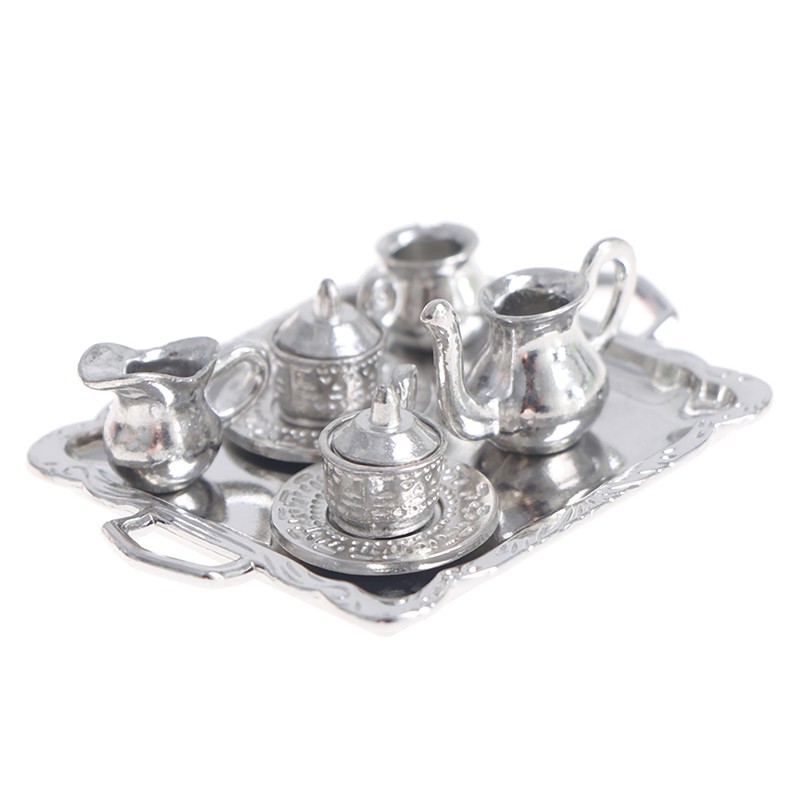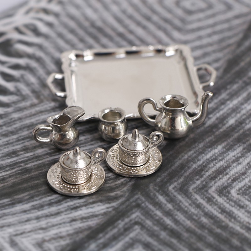 10pcs 1/12 Dollhouse Miniatuur Zilveren Metalen Thee Koffie Lade Servies Set