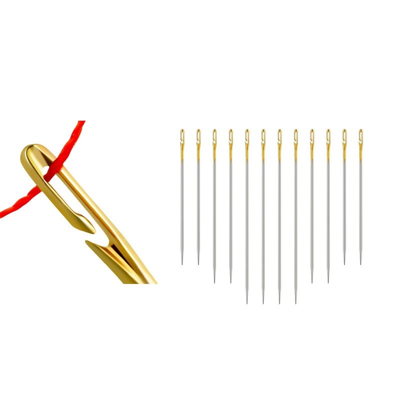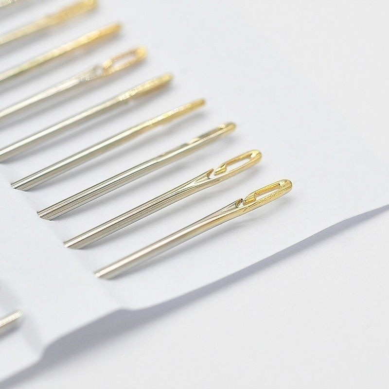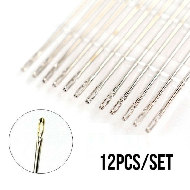 12Pcs Self-Threading Naalden Rvs Quick Automatische Threading Naald Stiksels Pins Diy Punch Naald Threader