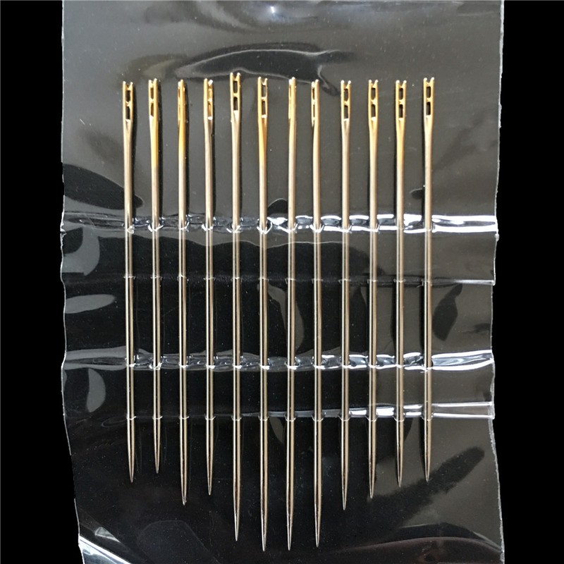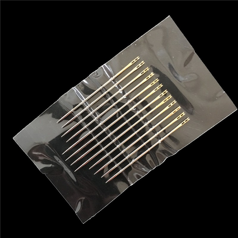 12 Stks/Set Blind Naalden Goud Staart Multi-Size Side Opening Rvs Stopnaald Hand Naaien Naalden Borduurwerk Tool Diy Naald
