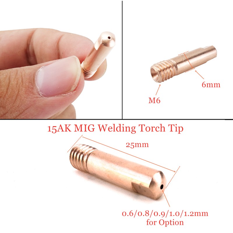 15Ak Lastoorts Verbruiksartikelen 0.6Mm 0.8Mm 0.9Mm 1.0Mm 1.2Mm Mig Torch Gas Nozzle Tip Houder Van Mig Mag Lasser