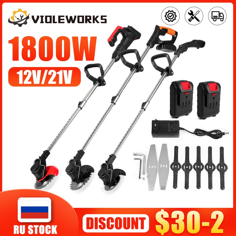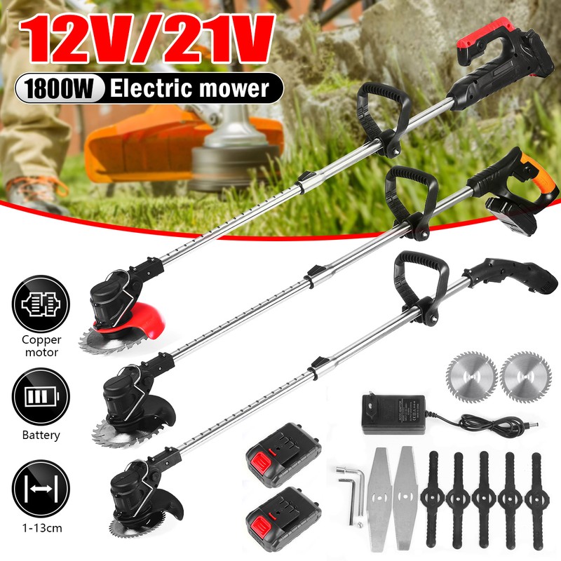 1800W 12V/21V Elektrische Grastrimmer Met 2 Batterijen Draadloze Draadloze Grasmaaier Lengte Verstelbare Tuin Snoeien Cutter Tool
