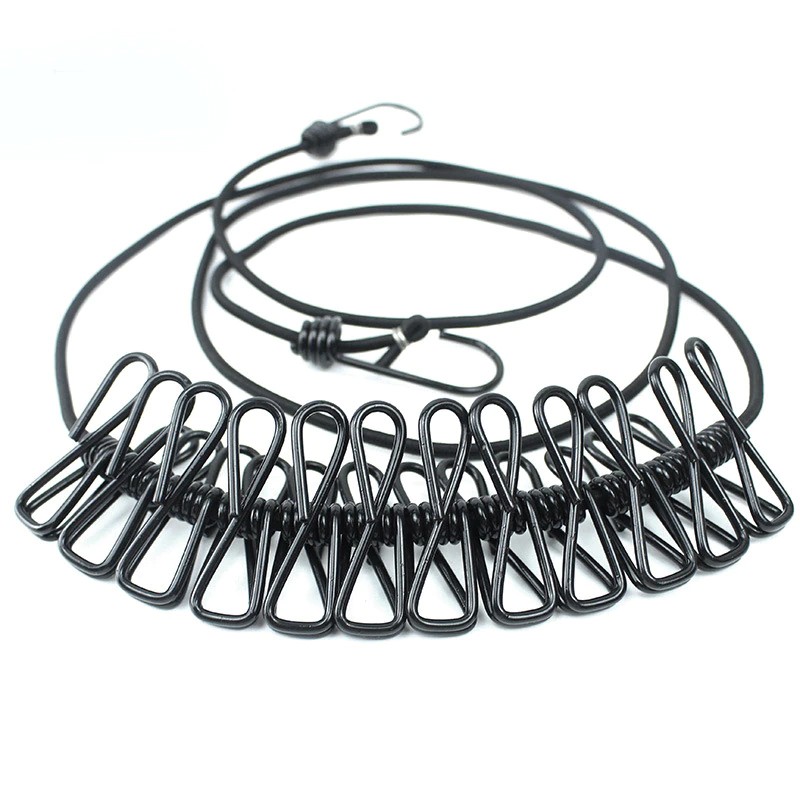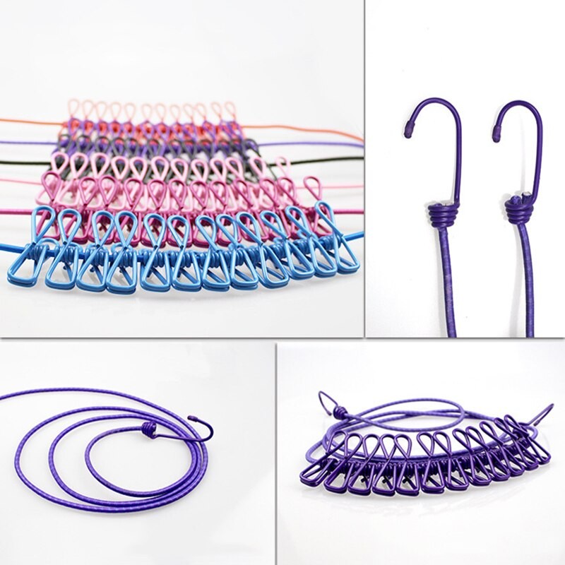 180Cm 12 Clips Multifunctionele Droogrek Kleding Lijn Met Doek Hangers Staal Kleding Lijn Pinnen Draagbare Reizen Waslijn