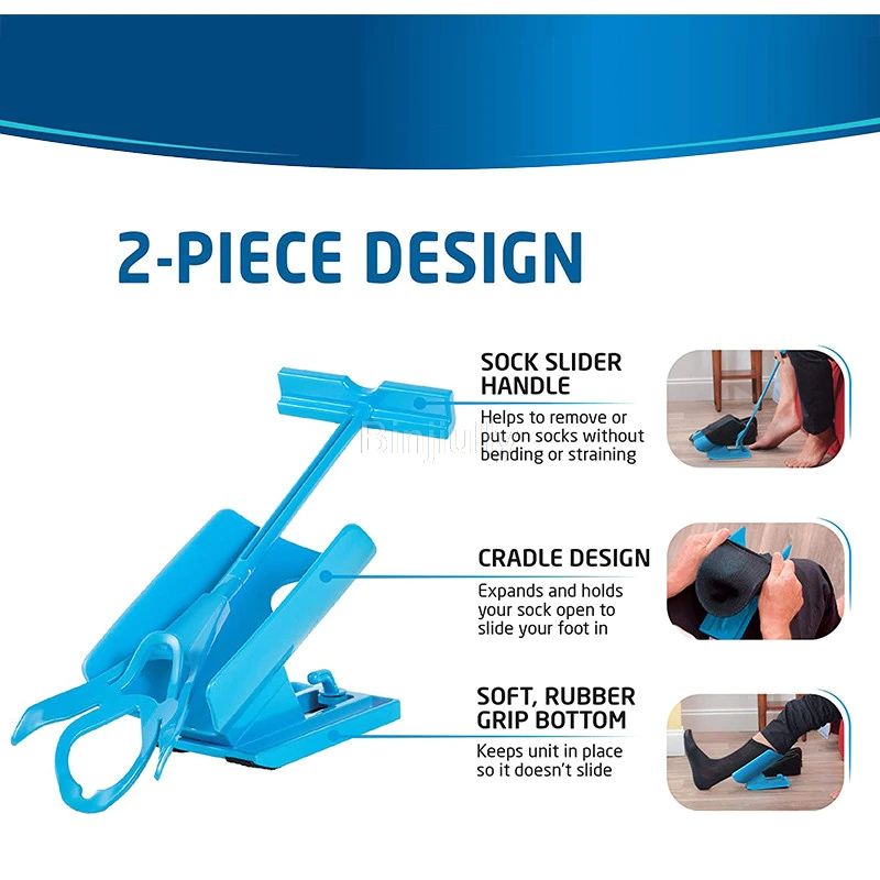 1Pc Blauw Sok Slider Aid Gemakkelijk Op Off Sok Helper Kit Schoenlepel Pijn Gratis Geen Buigen Schoenlepel Voor Zwangerschap Dressing Aids Gereedschappen