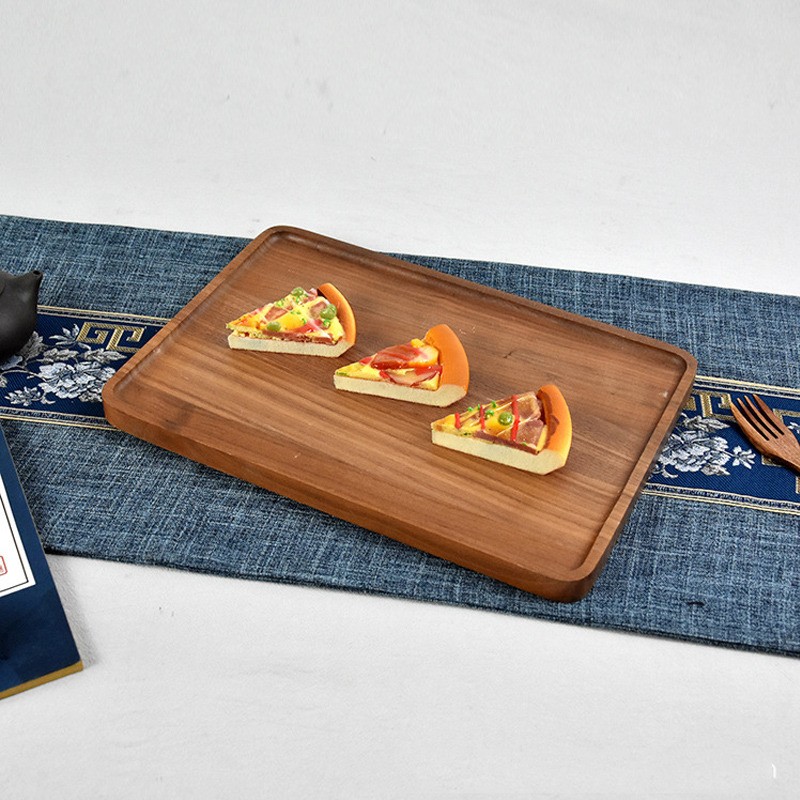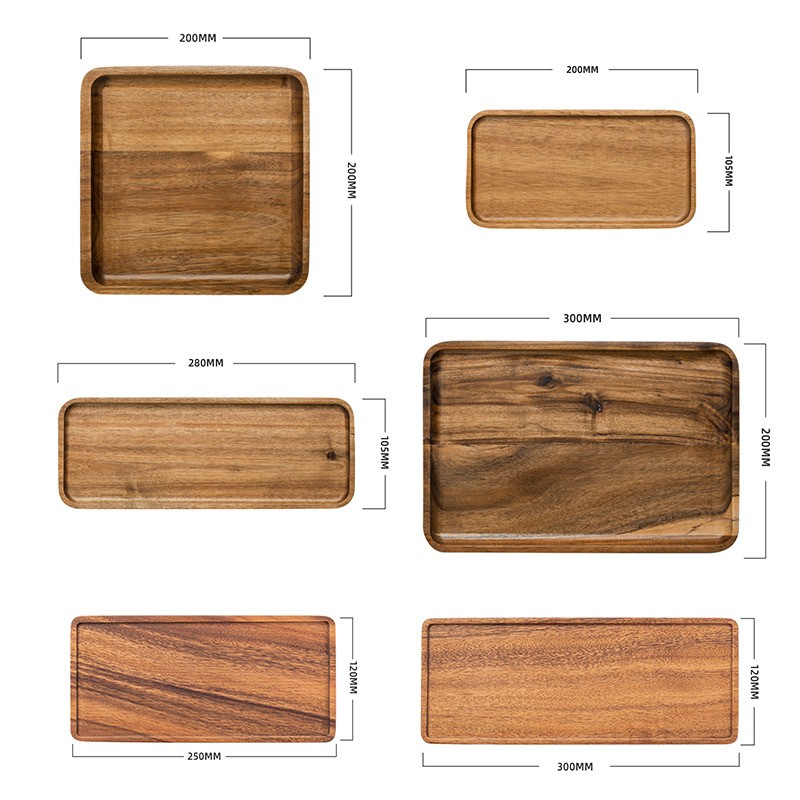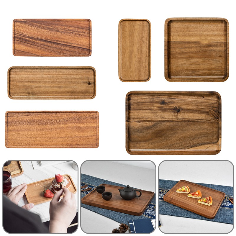 1Pc Acacia Hout Dienblad Vierkante Rechthoek Ontbijt Sushi Snack Brood Dessert Taart Plaat Met Gemakkelijk Carry Gegroefde Handvat