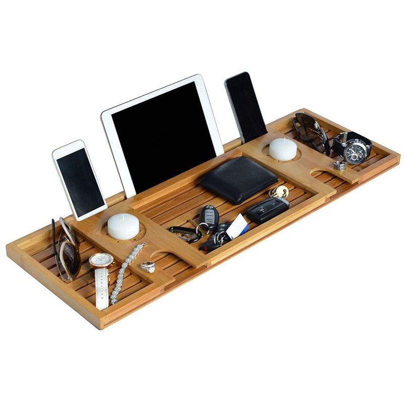 1Pc Houten Handgemaakte Bad Lade Badkamer Planken Gelden Voor Pad/Boek/Tablet Thuis Badkamers Accessoires Bad Rack Standhouder