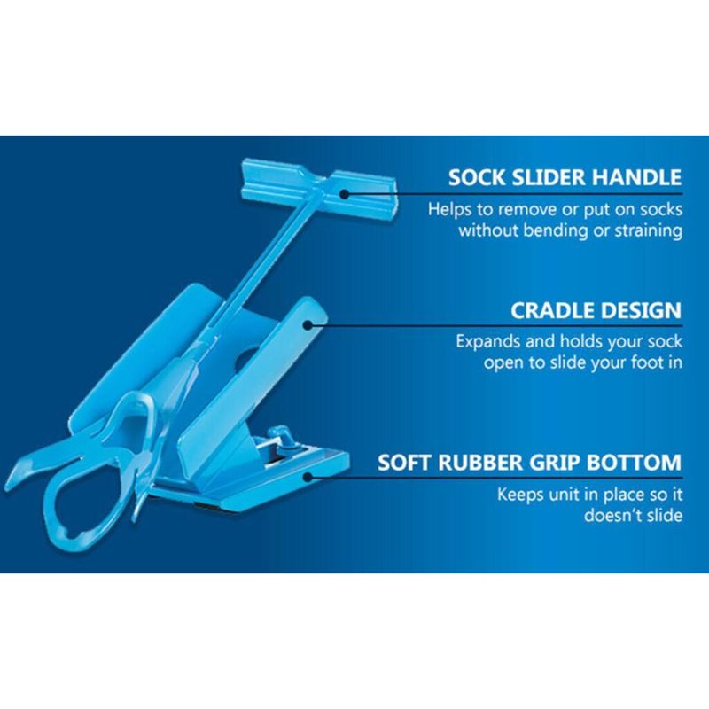 1pcs Sok Slider Hulp Blauw Helper Kit Geen Buigen Schoenlepel Geschikt Voor Sokken Voet Brace Ondersteuning Helpt Zet sokken Op Off