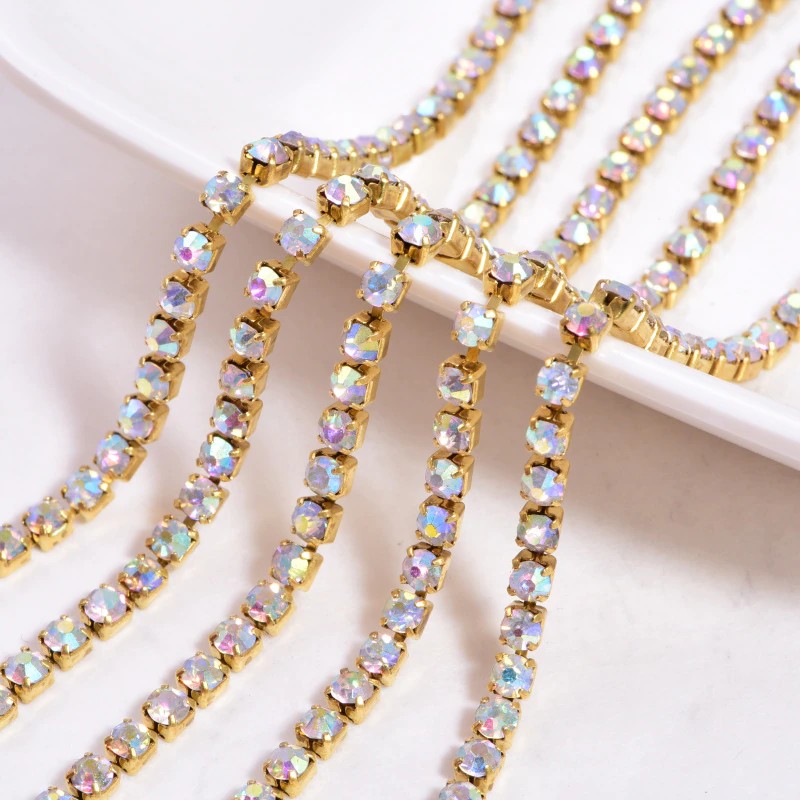 Groothandel Crystal Rhinestone Cup Chain: Crystal AB, Clear Crystal