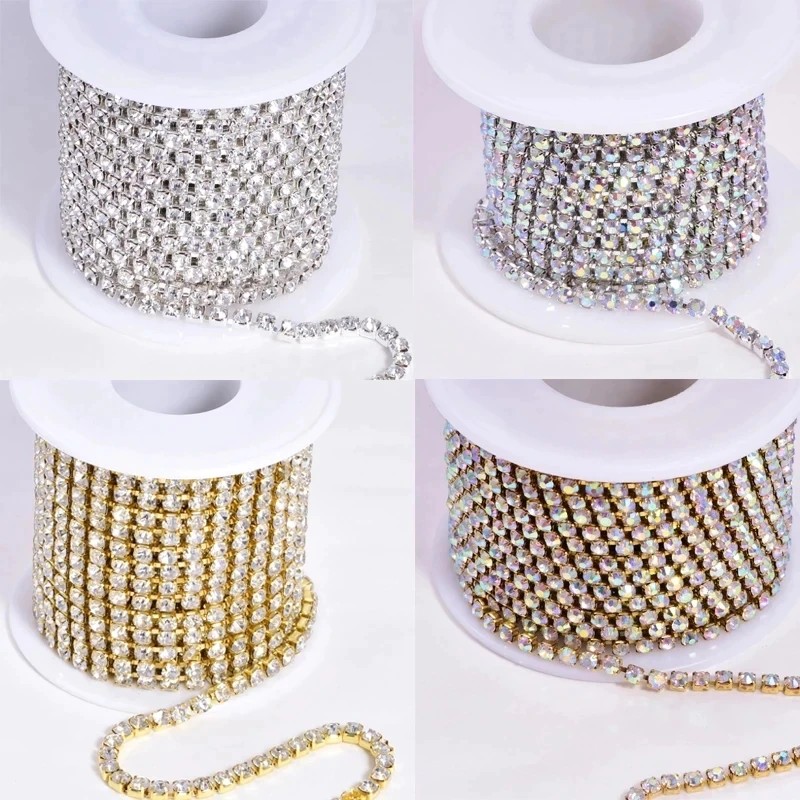 1Yard 10Yards/Roll Ss6-Ss18 Стразы Для Рукоделия Glitter Crystal Naai Rhinestones Cup Ketting Strass Trim Voor Kleding A22