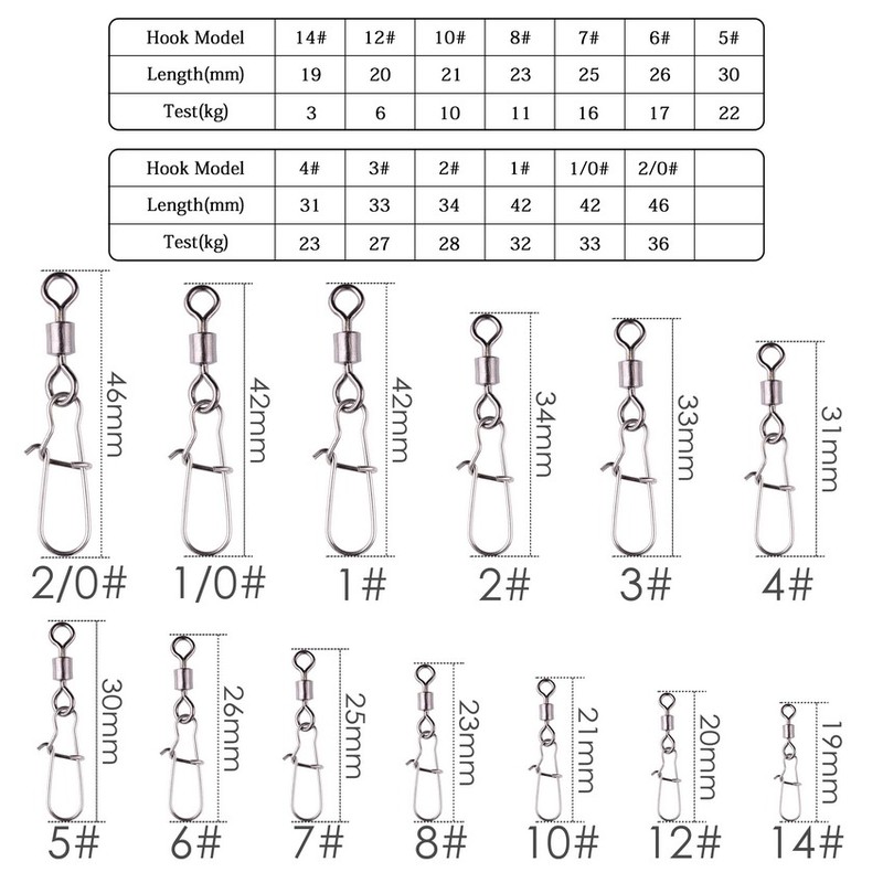 2/0 #1/0 #1 #-14 # Rvs Vissen Connector Pin Bearing Rolling Swivel Snap Pins Vissen Visgerei Accessoires Met Doos