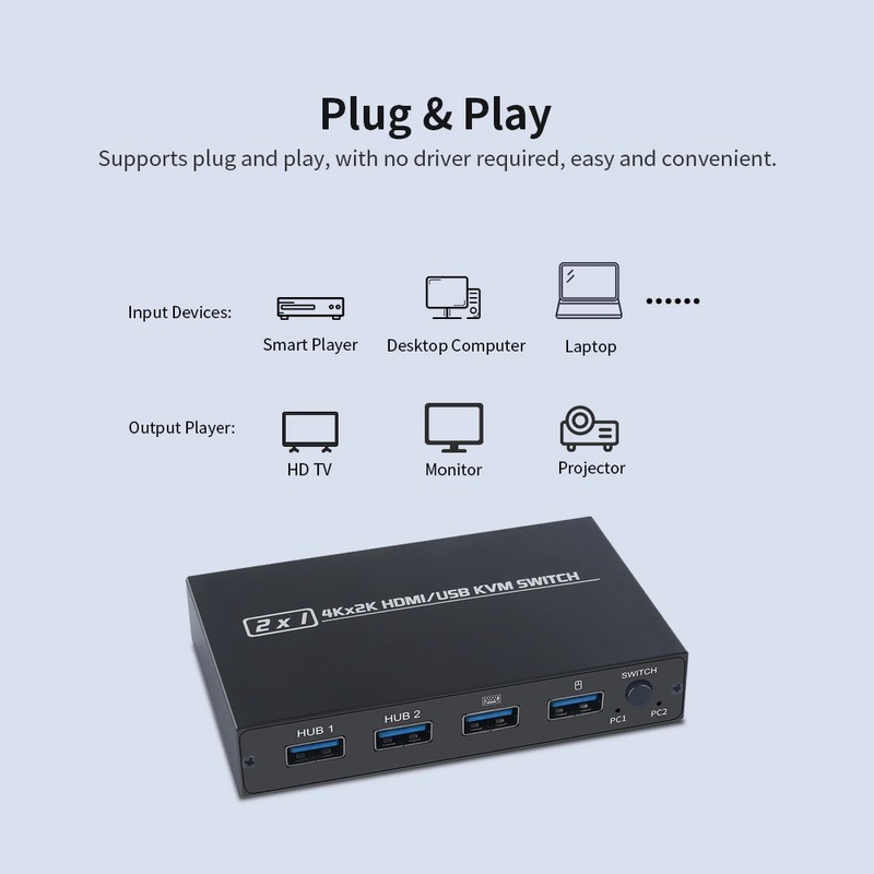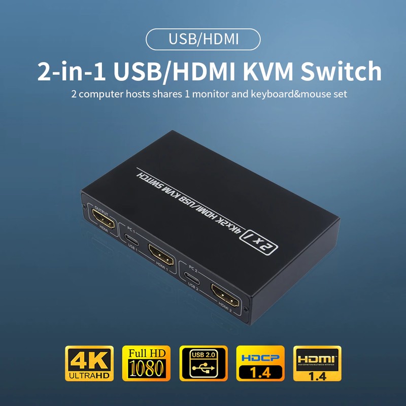 -Ondersteuning 2 routes HDMI en USB input en 1 route hdmi-uitgang, de 2 computer hosts aandelen 1 monitor of display apparaat.