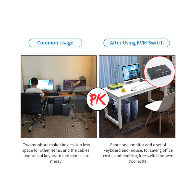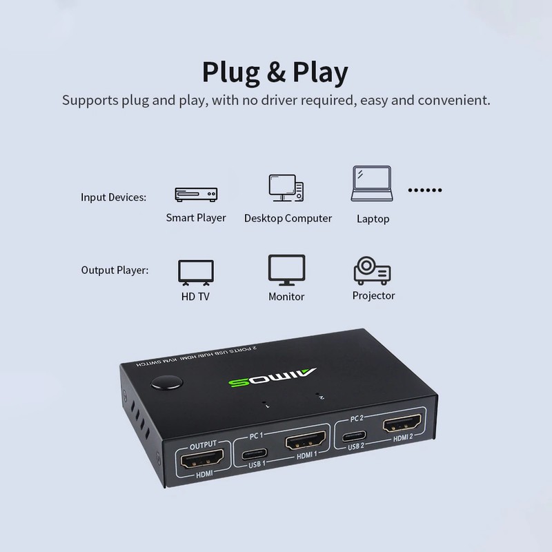 Aimos Am-Kvm 201Cl 2-In-1 Hdmi-Compatibel/Usb Kvm Switch Ondersteuning Hd 2K * 4K 2 Hosts 1 Monitor/Toetsenbord & Muis Set Kvm Switch
