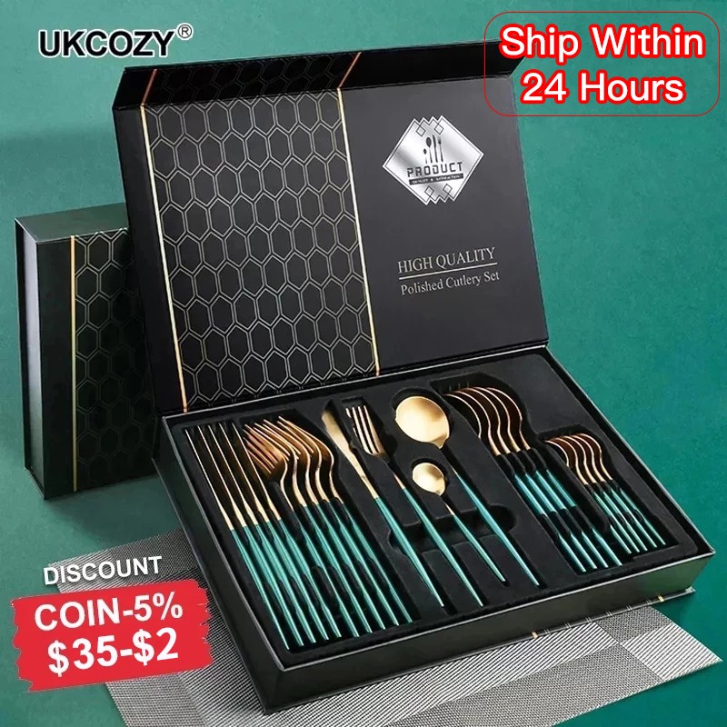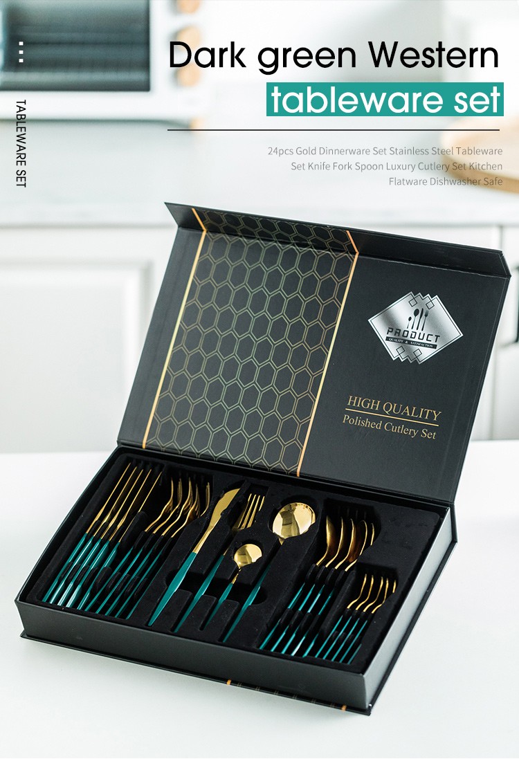 24 Stuks Gold Servies Set Rvs Servies Mes Vork Lepel Luxe Bestek Set Keuken Bestek Vaatwasmachinebestendig