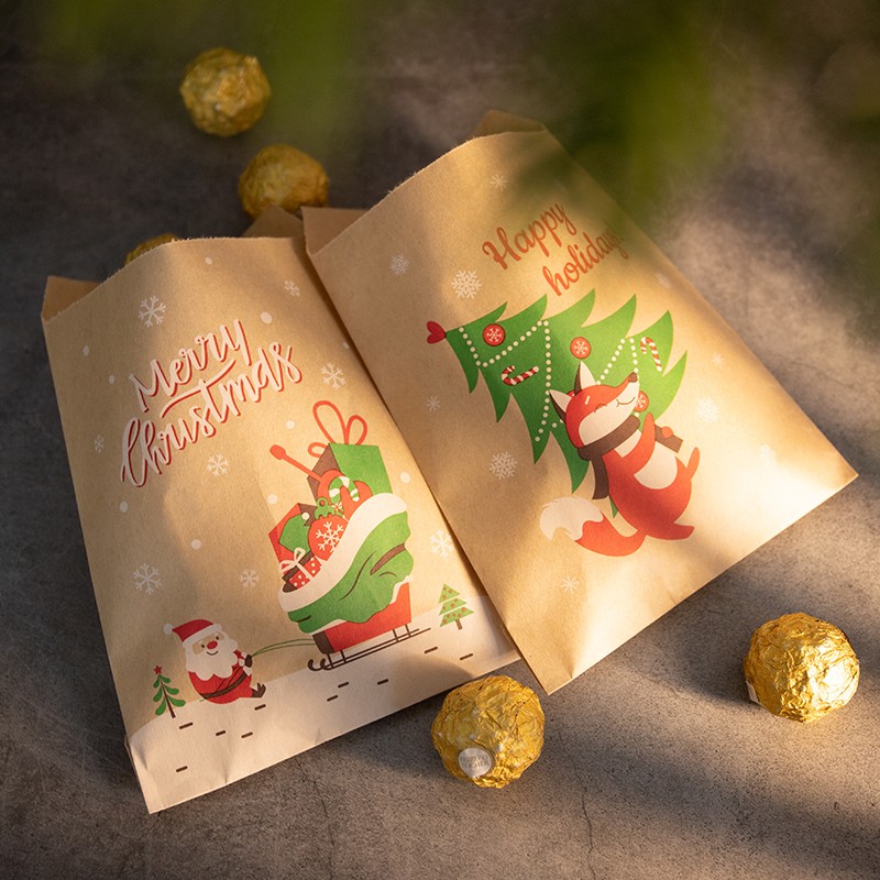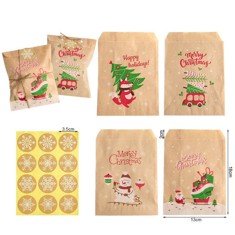 24Sets Icraft Kerst Kraftpapier Gift Bags Party Favor Treat Verpakking Set Cookies Pouch Met Xmas Stickers Rode Vos Sneeuwpop