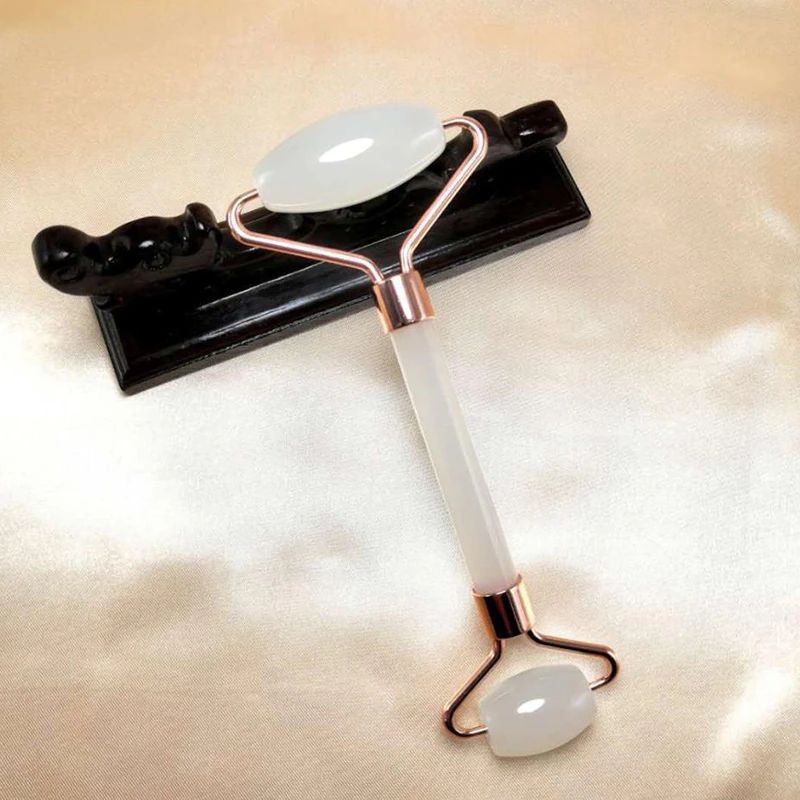 3. omhoog, en beweeg de jadeïet roller rond het voorhoofd, wangen, lippen en hals. Als uw ogen zijn puffy of puffy, sluit je ogen en roll zachtjes op de oogleden.