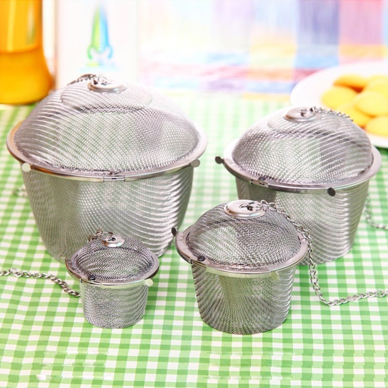 Arshen 3 Sizes Spice Seasoning Bag Tea Strainer Chained Lid Stainless Steel Mesh Ball Tea Coffee Filter Basket Infuser Tools