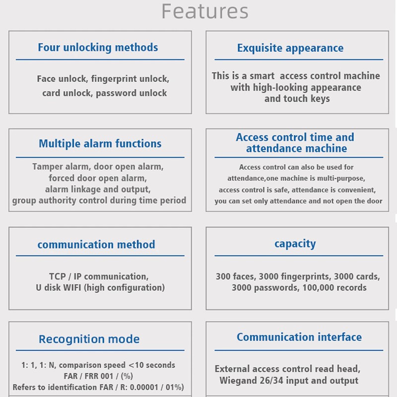 De is een TCP toegangscontrole vingerafdruk en gezicht. ID/IC module optie. HET is een kosteneffectieve oplossing voor gebruikers die basic vinger en gezicht toegangscontrole behoeften. Met een scherm en tcp communicatie, alle instellingen kan gemakkelijk worden gedaan door software. Als er is geen ingewikkelde installatie, de installatie kosten zijn gehouden minimum. Vrijgegeven met de nieuwste vingerafdruk algoritme, de bijpassende snelheid en prestaties zijn ongeëvenaard.