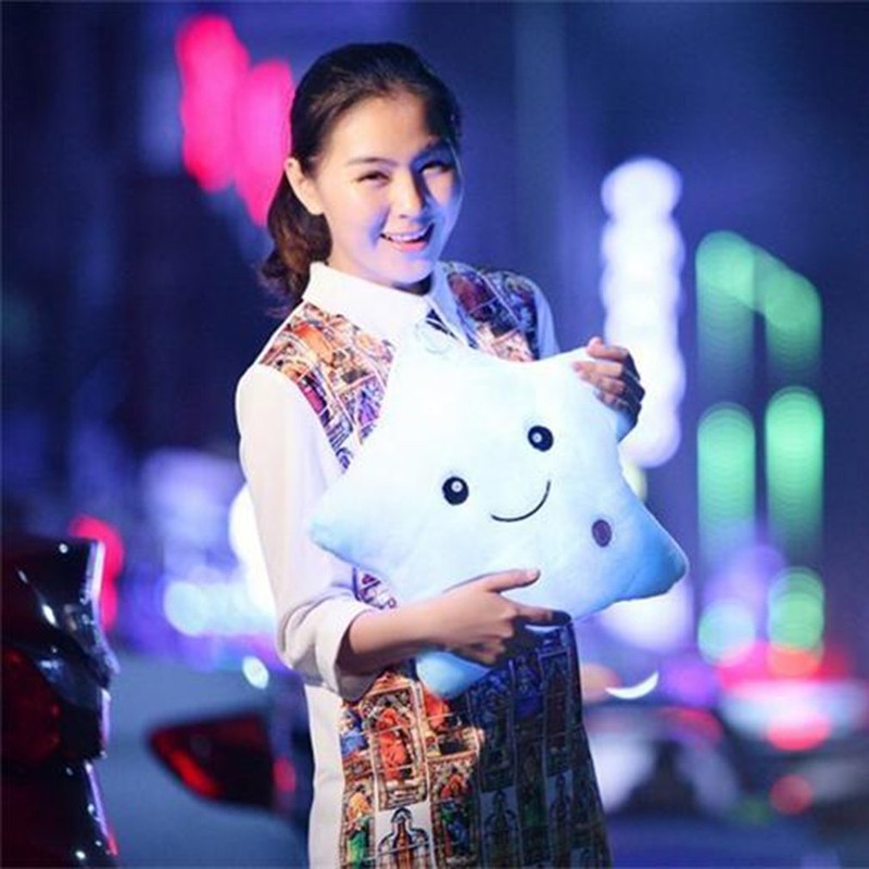 34Cm Unieke Speelgoed Lichtgevende Kussen Levendige Ster Ontwerp Led Licht Kleurrijke Kussen Sterren Pluche Kussen Speelgoed Cadeau Voor Kinderen Kinderen Meisje