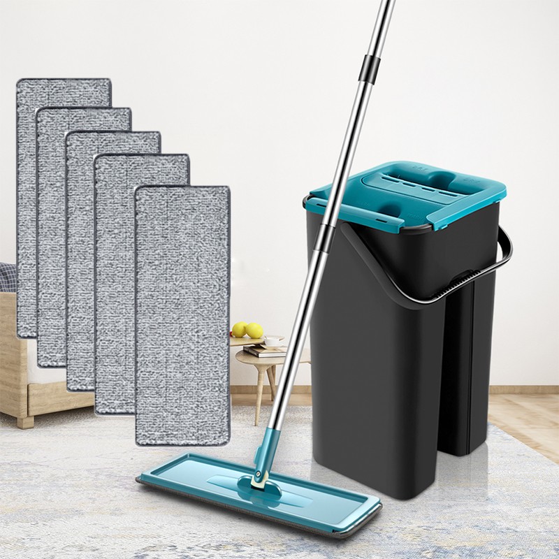 360 Roterende Flat Squeeze Mop Met Emmer Schoonmaken Wassen Vloer Mop 4/6Pcs Vervangbare Pads Nat Droog Gebruik Huishouden Keuken Gereedschap