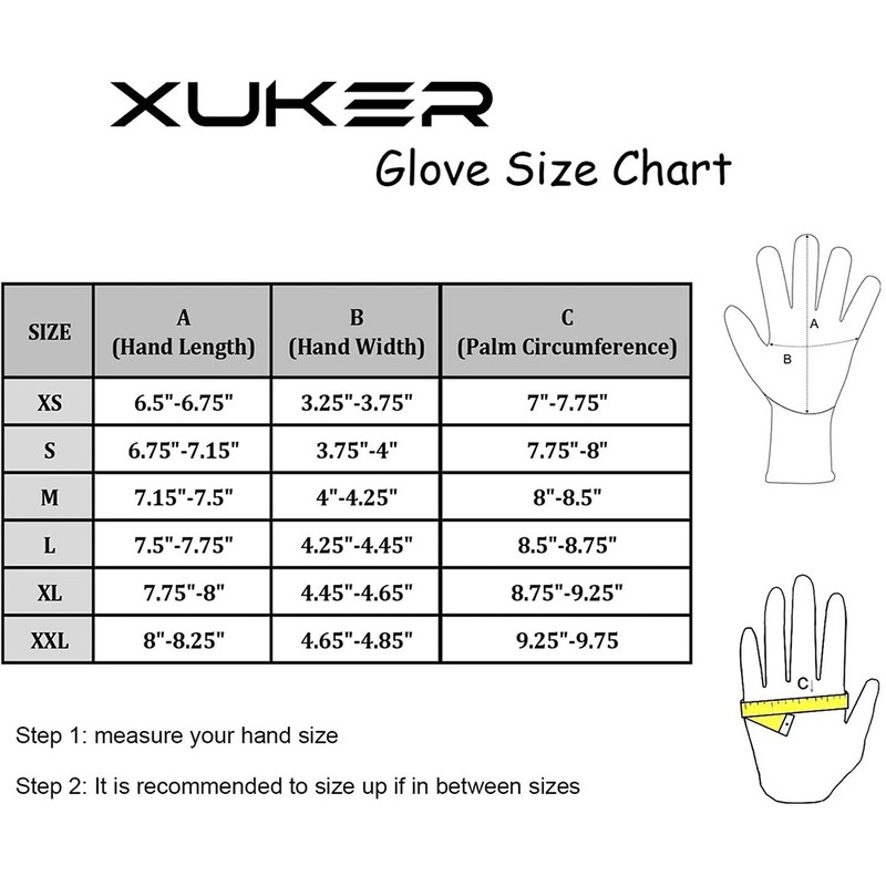 XUKER Handschoenen Maattabel (1inch = 2.54cm)