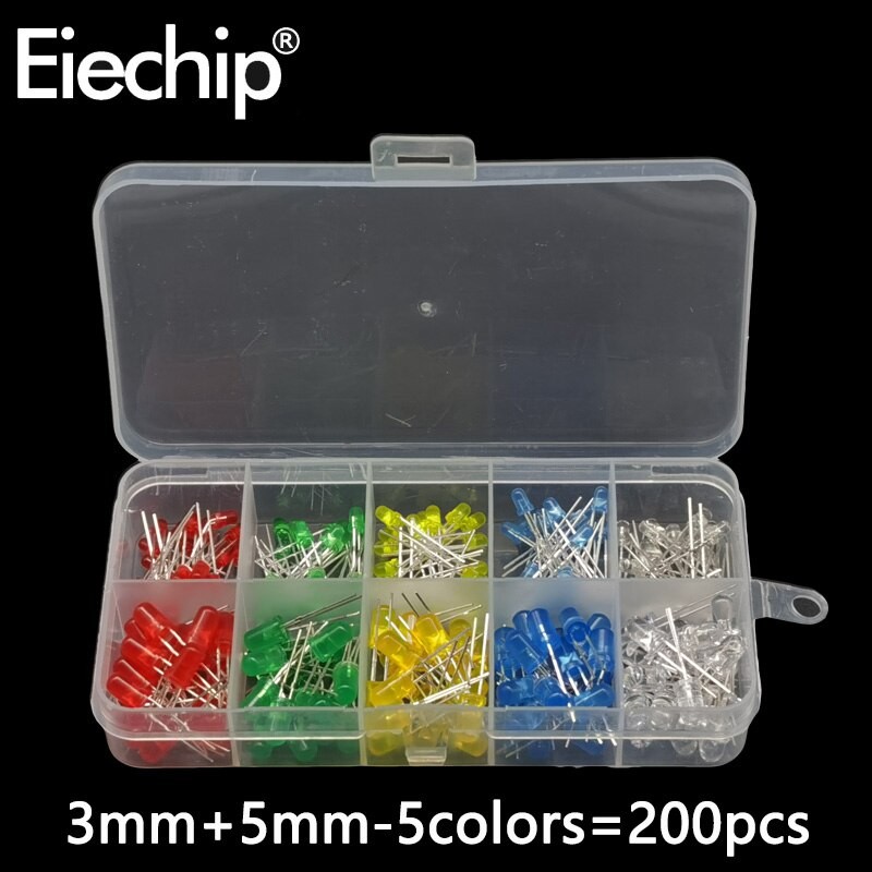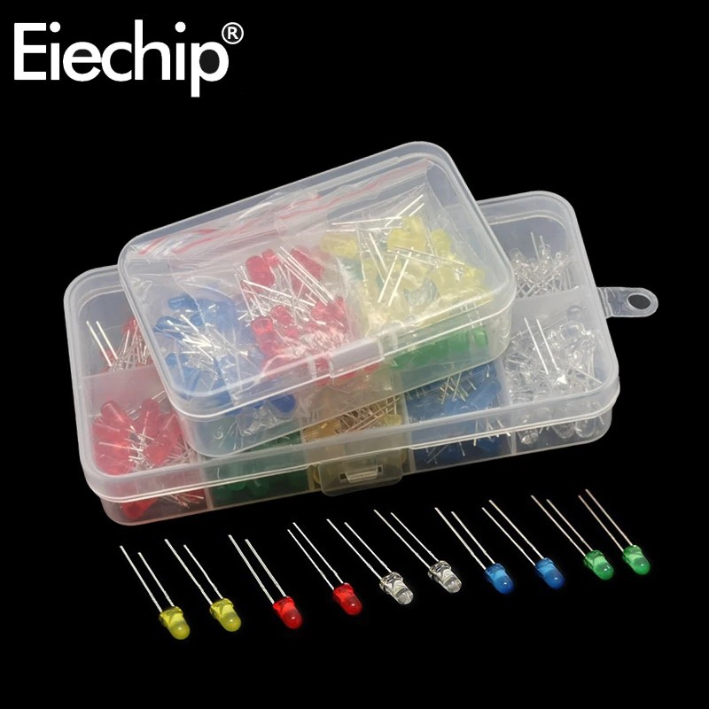3Mm 5Mm Led Diode Gevarieerd Kit, Wit Groen Rood Blauw Geel Oranje F3 F5 Light Emitting Diy Led Verlichting Diodes Elektronische Kit
