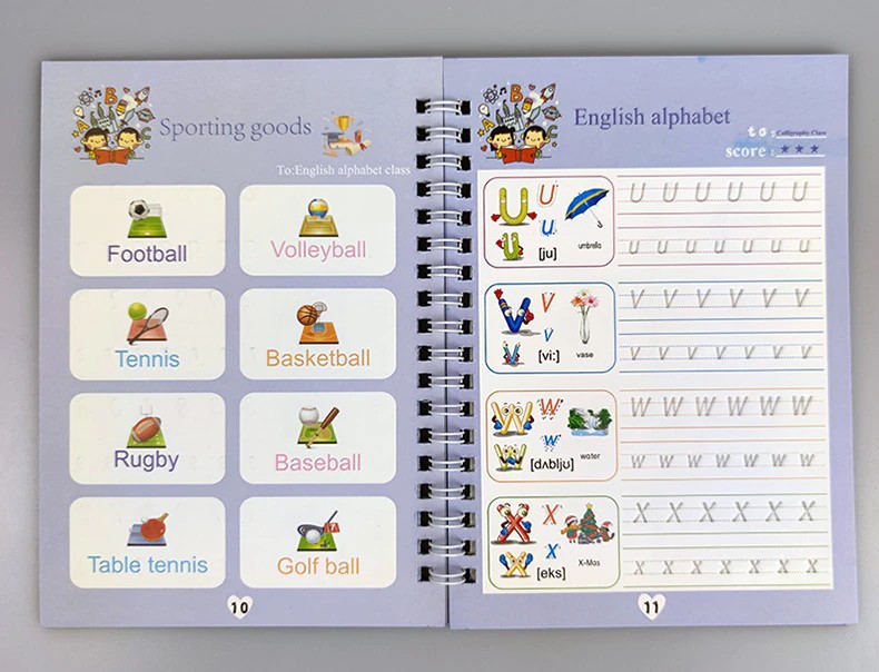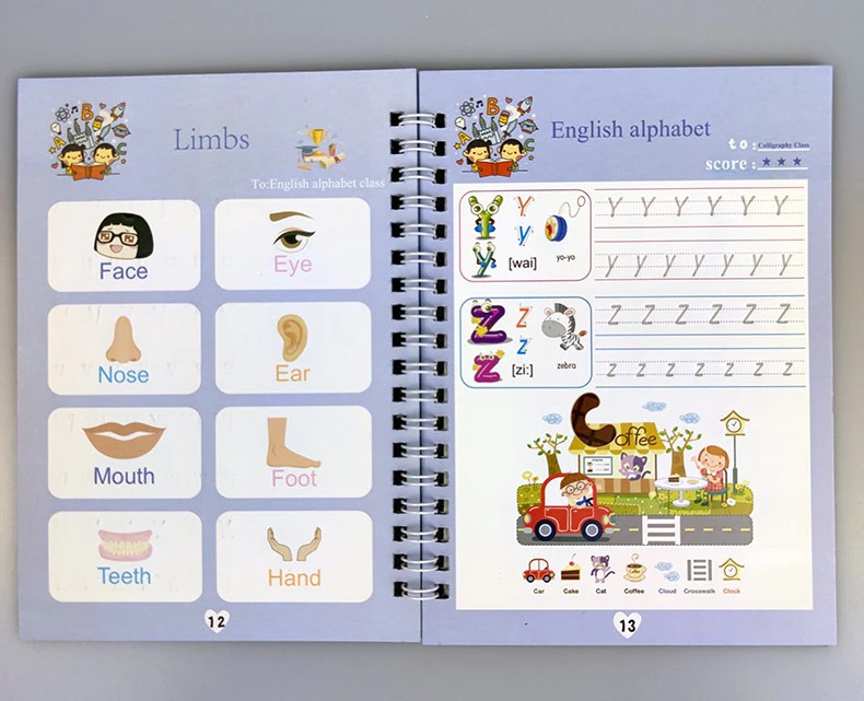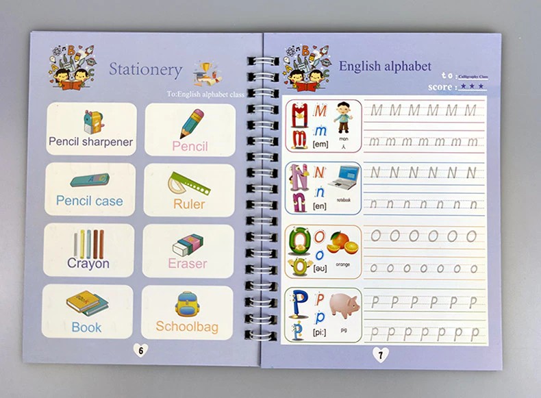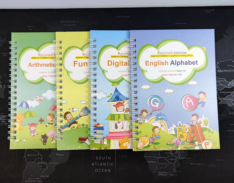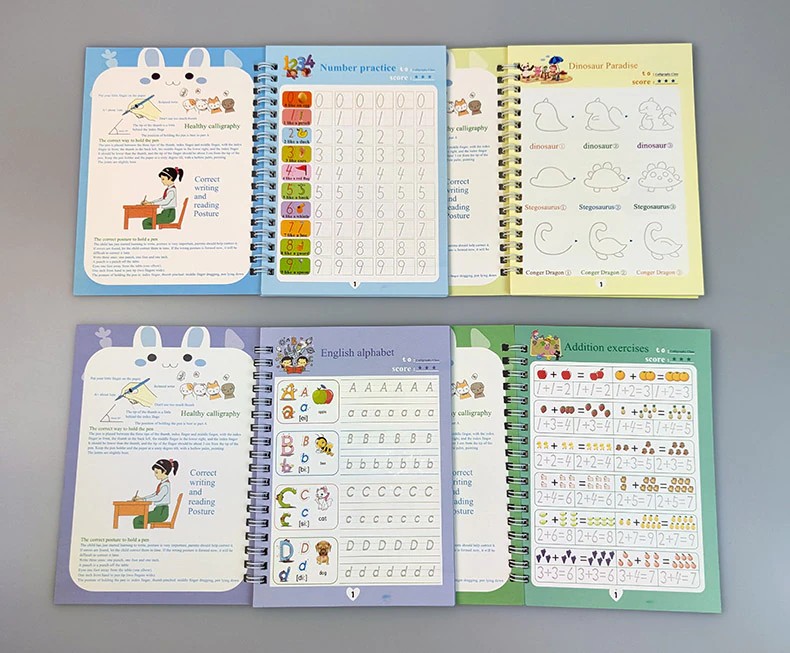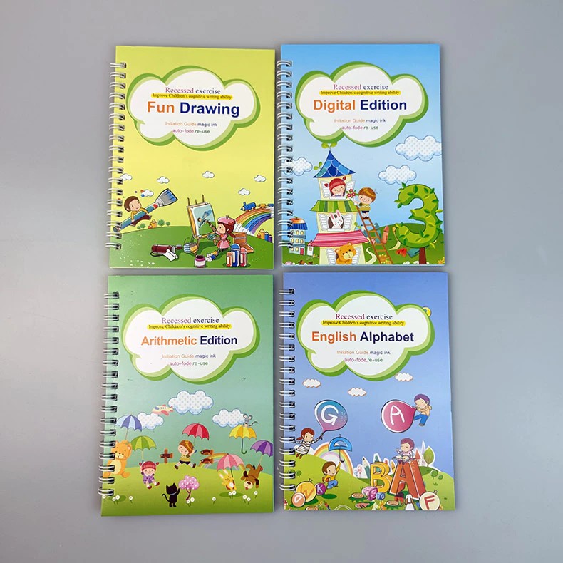 4 Boeken + Pen Magic Copy Boek Gratis Vegen Kinderen Kids Schrijven Sticker Praktijk Engels Schrift Voor Kalligrafie Montessori