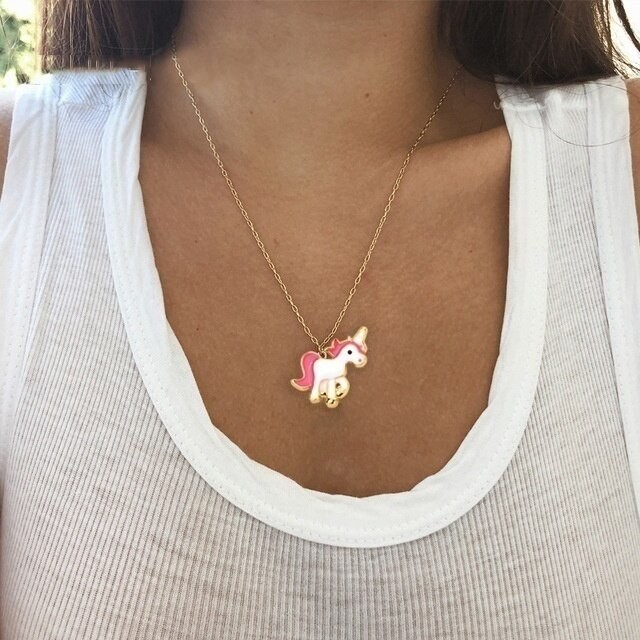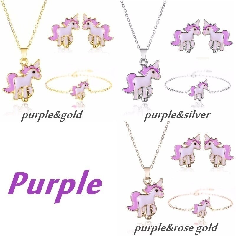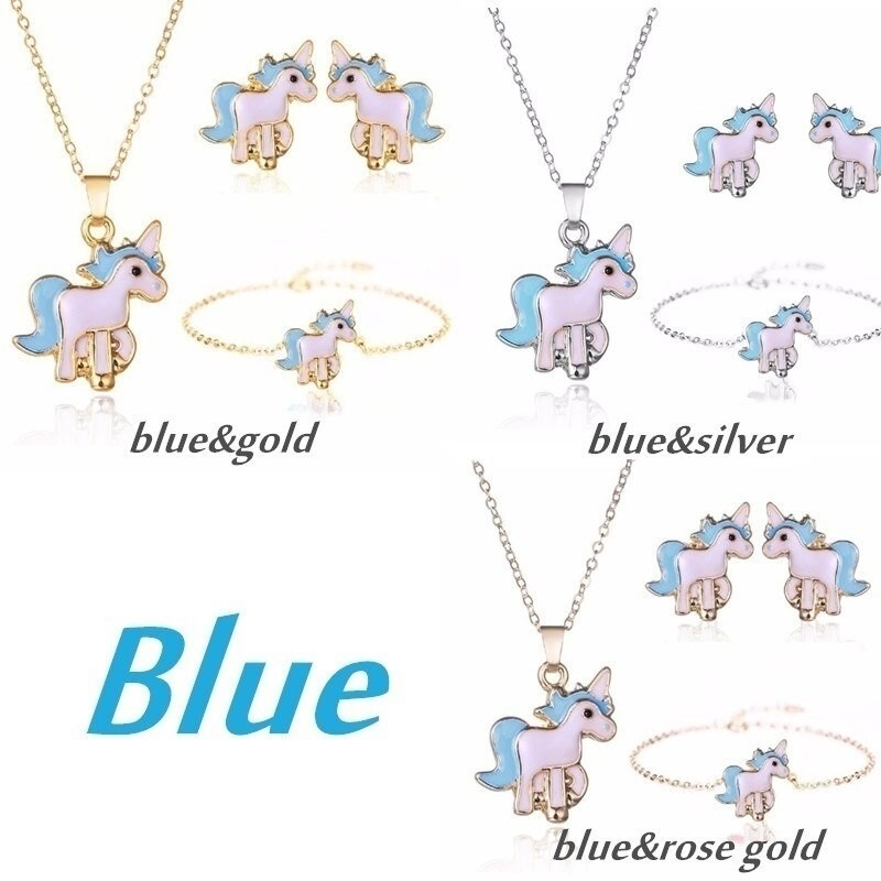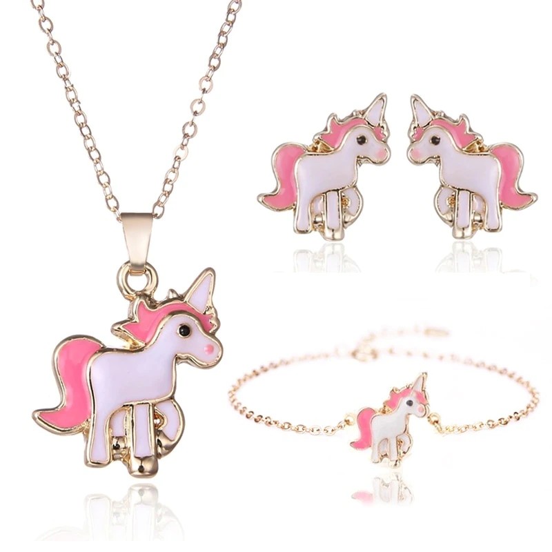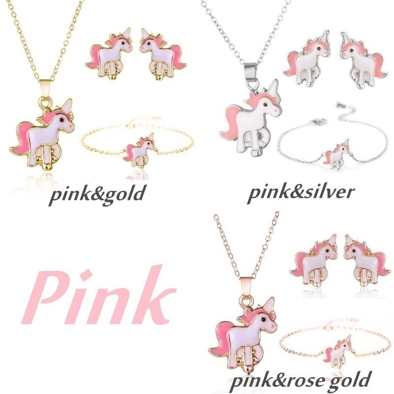 4 In 1 Oorbel En Ketting Set Cartoon Eenhoorn Ketting Oorbellen Sieraden Roze Meisjes Xmas Sieraden Gift