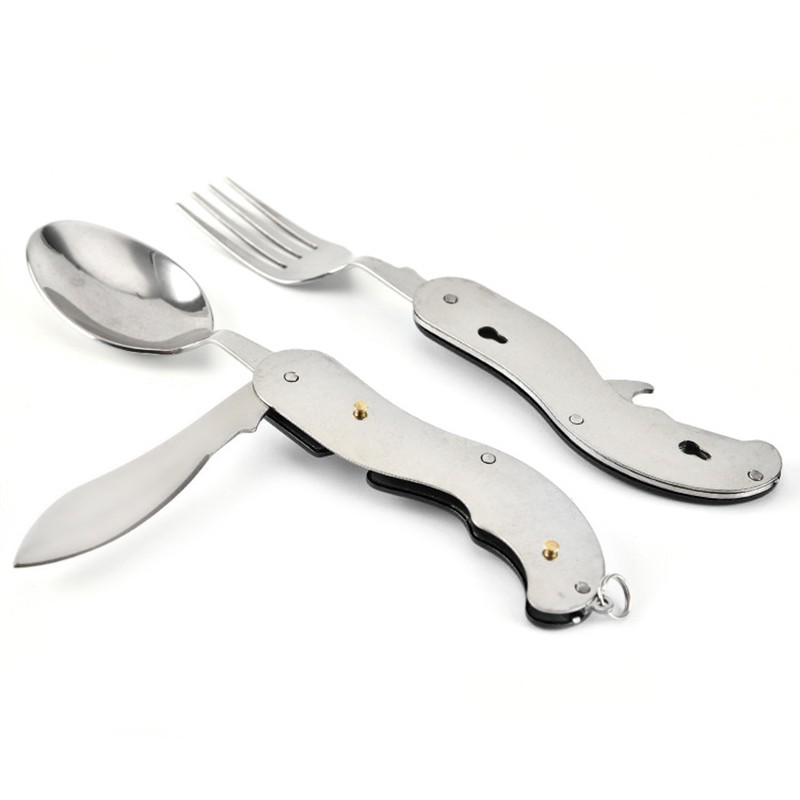 4 In 1 Outdoor Servies Camping Koken Levert Roestvrij Stalen Lepel Folding Pocket Kits Thuis Picknick Wandelen Reizen Gereedschap