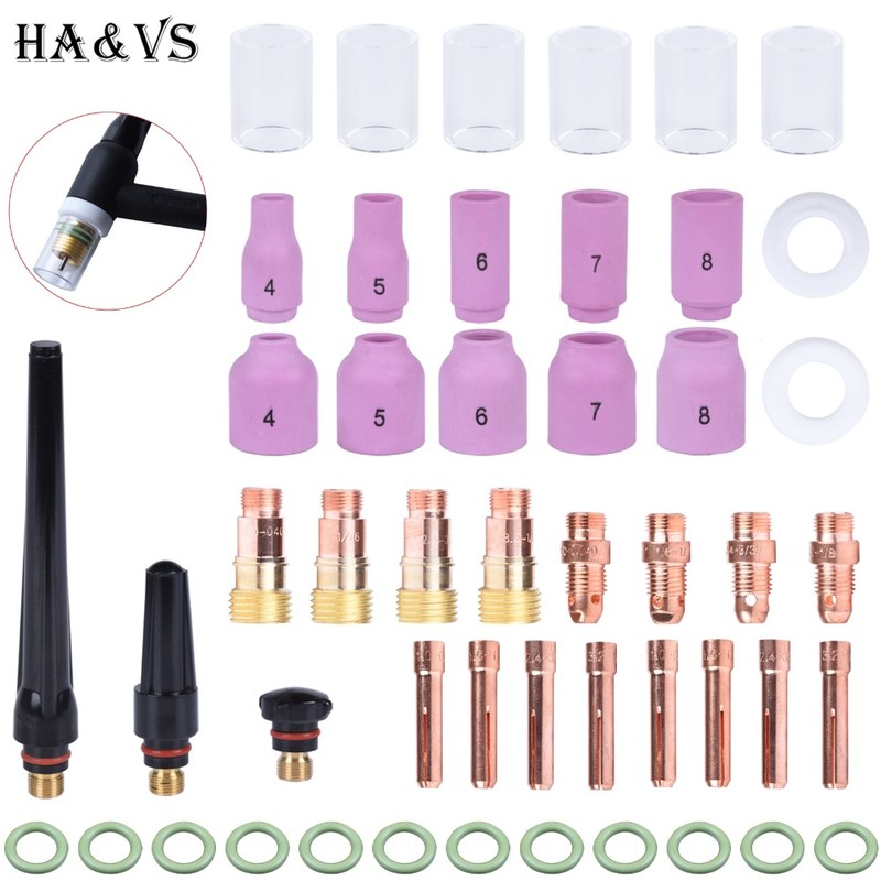 49Pcs Tig Lastoorts Stubby Gas Lens Voor Wp17 Wp18 Wp26 Tig 10 Pyrex Glas Cup Spares Kit Duurzaam Praktische Accessoires