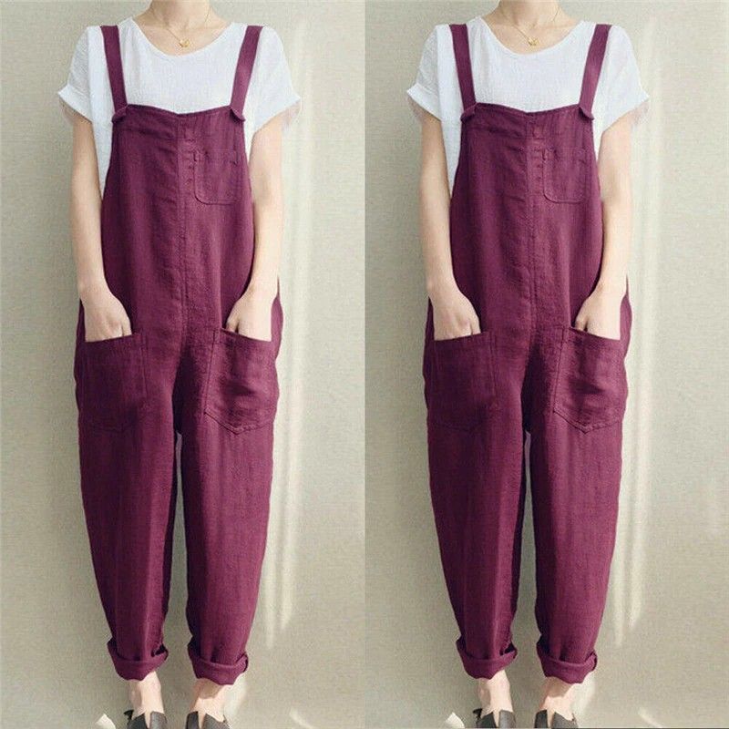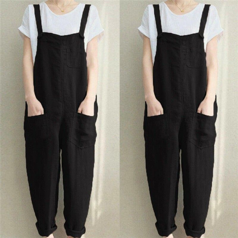 4Xl Womens Mouwloze Tuinbroek Rompertjes Katoen Linnen Jumpsuit Losse Preppy Stijl Broek Casual Pocket Overalls Playsuits