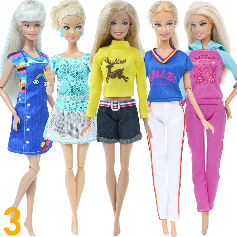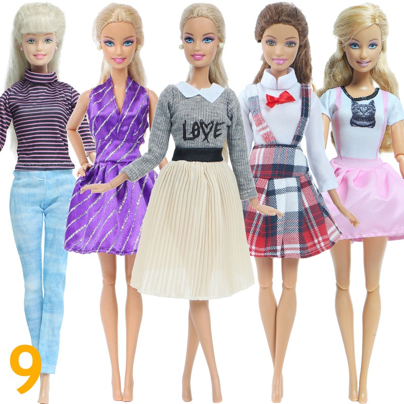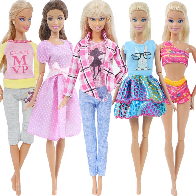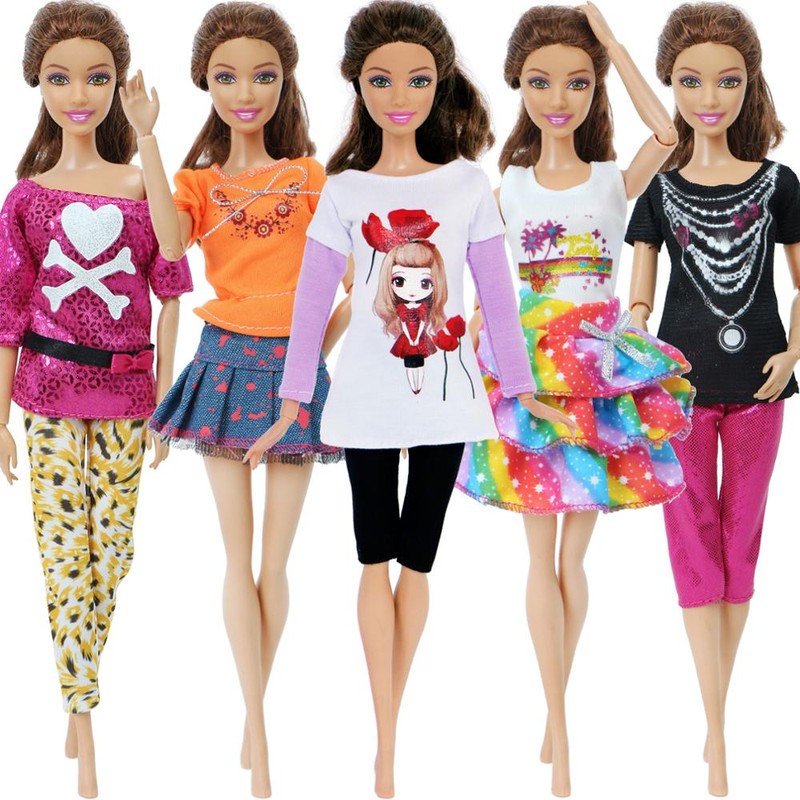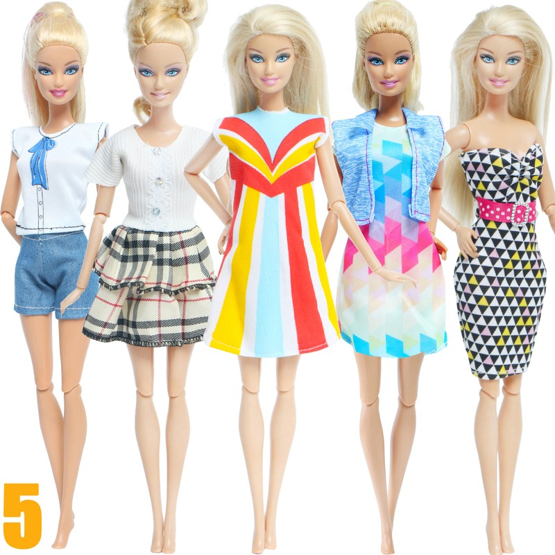 5 Pcs Fashion Dagelijkse Slijtage Casual Outfits Vest Overhemd Rok Broek Jurk Poppenhuis Accessoires Kleding Voor Barbie Pop