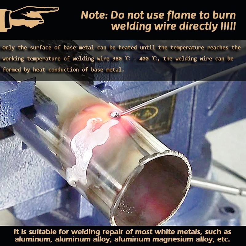 Gebruik geen vlam branden de lasdraad. Alleen wanneer de oppervlaktetemperatuur van de basis metalen is genoeg, de lasdraad kan hebben goede vloeibaarheid te dringen in de metalen capillaire.