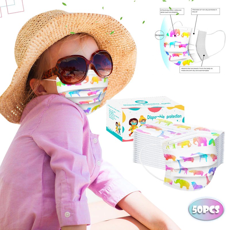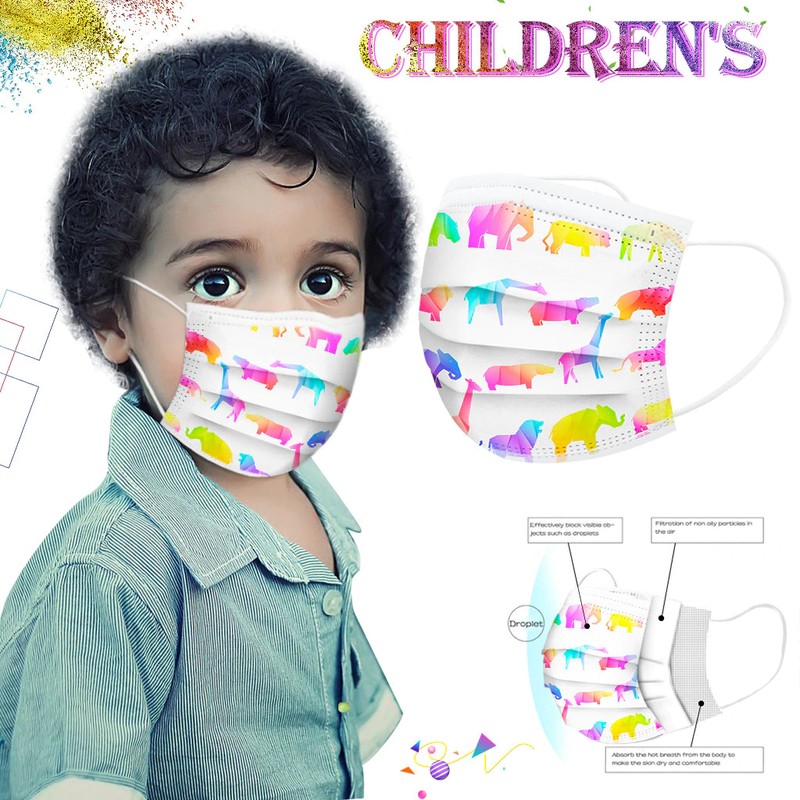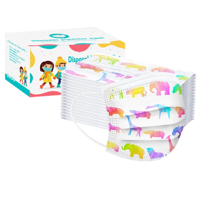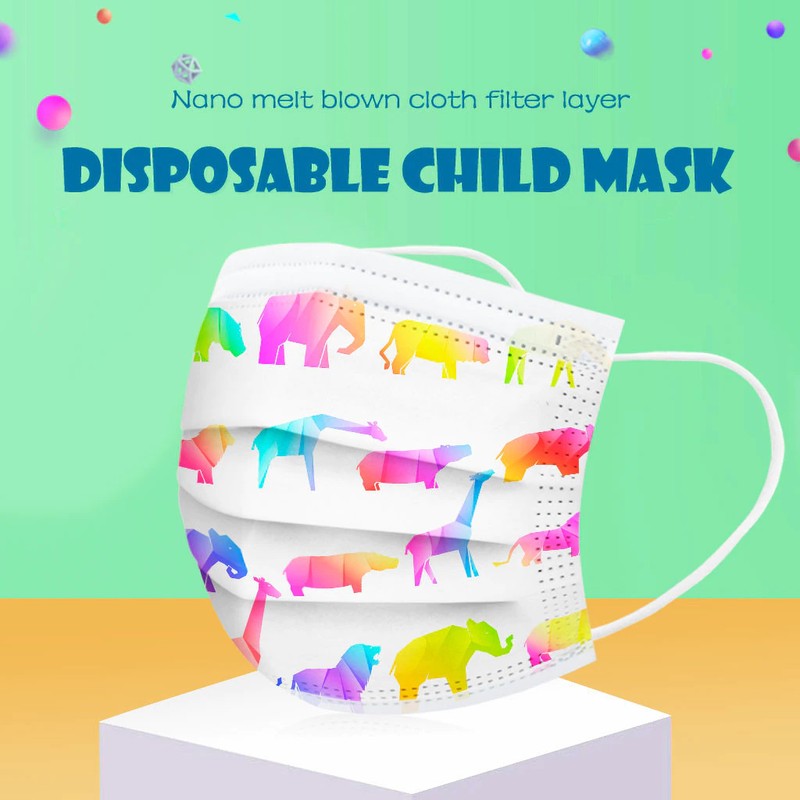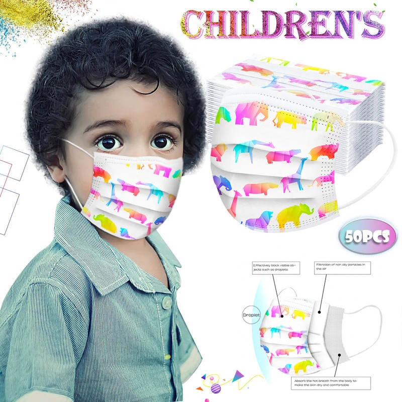 50 Stks/Doos Kinderen Cartoon Print Wegwerp Masker 3 Layer Kind Kids Filter Hygiëne Dikker Gezichtsmasker Oorhaakje Mond Cover