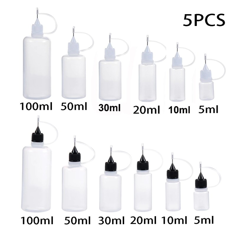 5 Stuks 5/10/20/30/50/100Ml Resuable Naald Tip Lijm Applicator Plastic Fles Voor Papier Quilling Diy Scrapbooking Craft Tool