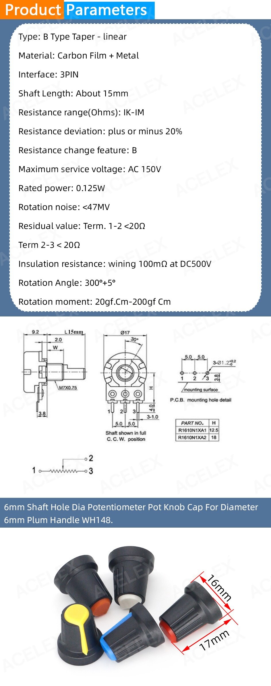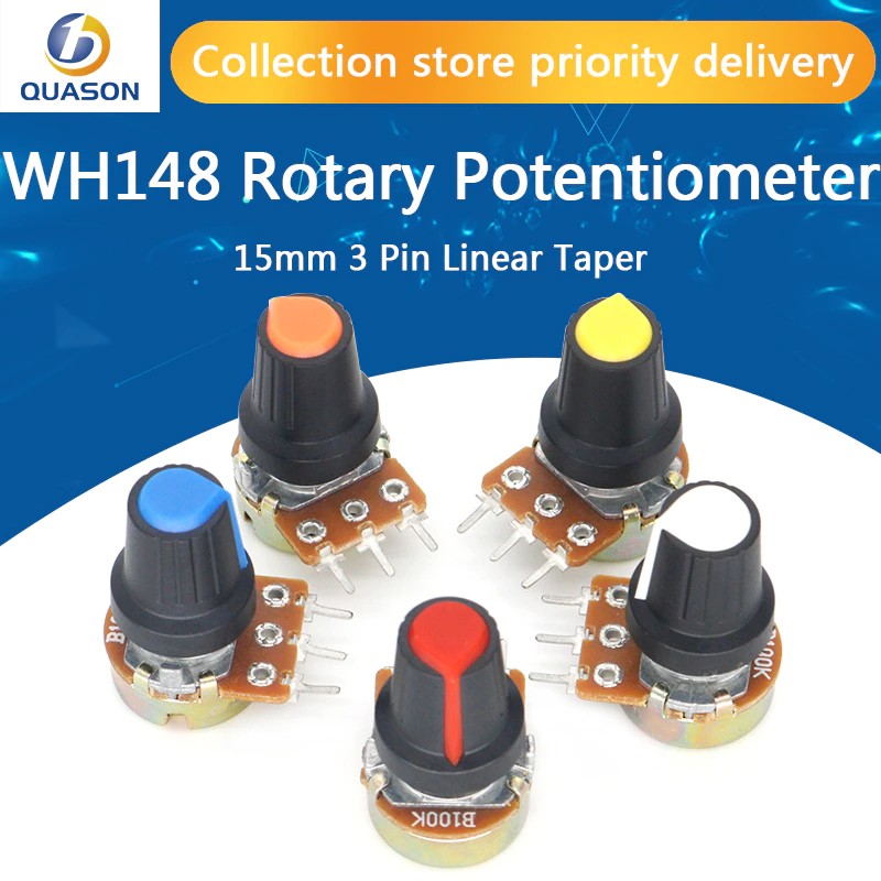 5 Stks/Partij Wh148 1K 10K 20K 50K 100K 500K Ohm 15Mm 3 Pin Linear Taper Rotary Potentiometer Weerstand Voor Arduino Met Ag2 White Cap