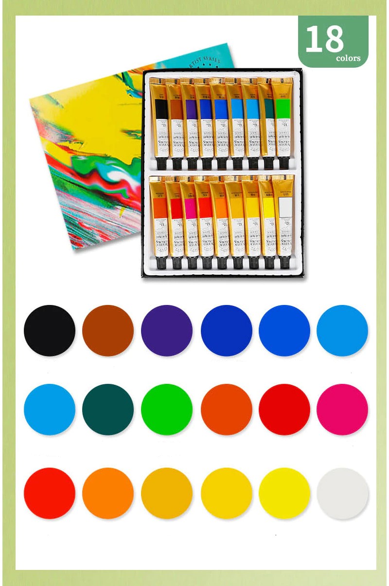 Acryl Verf 12/18/24 Kleuren Professionele Borstel Set 12Ml Buizen Kunstenaar Tekening Pigment Hand Geschilderde Muur Verf Diy