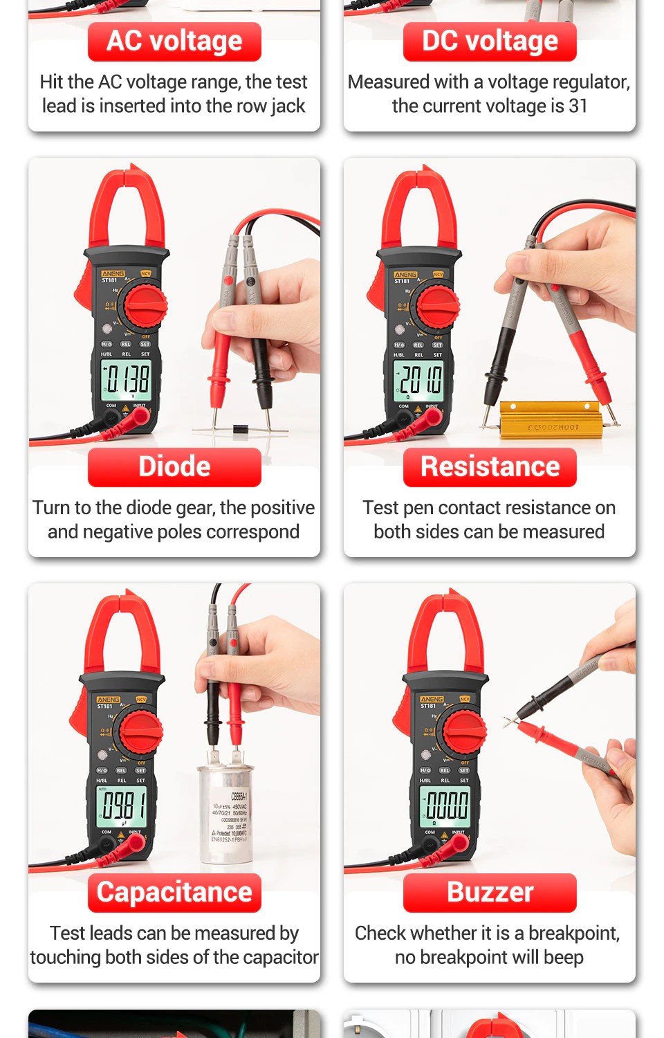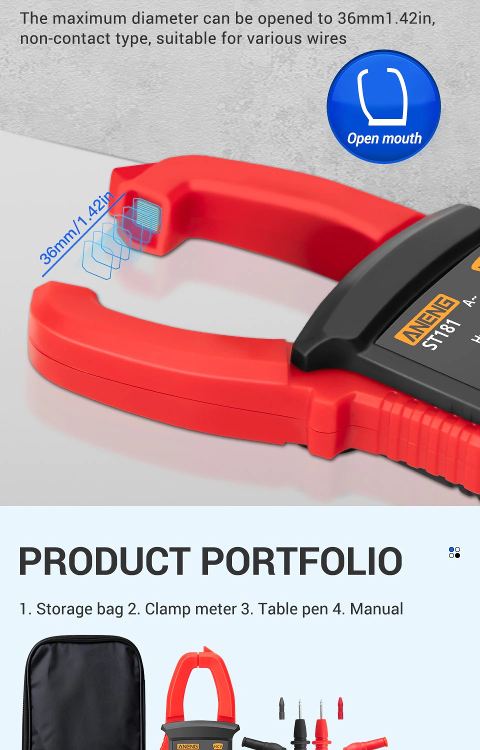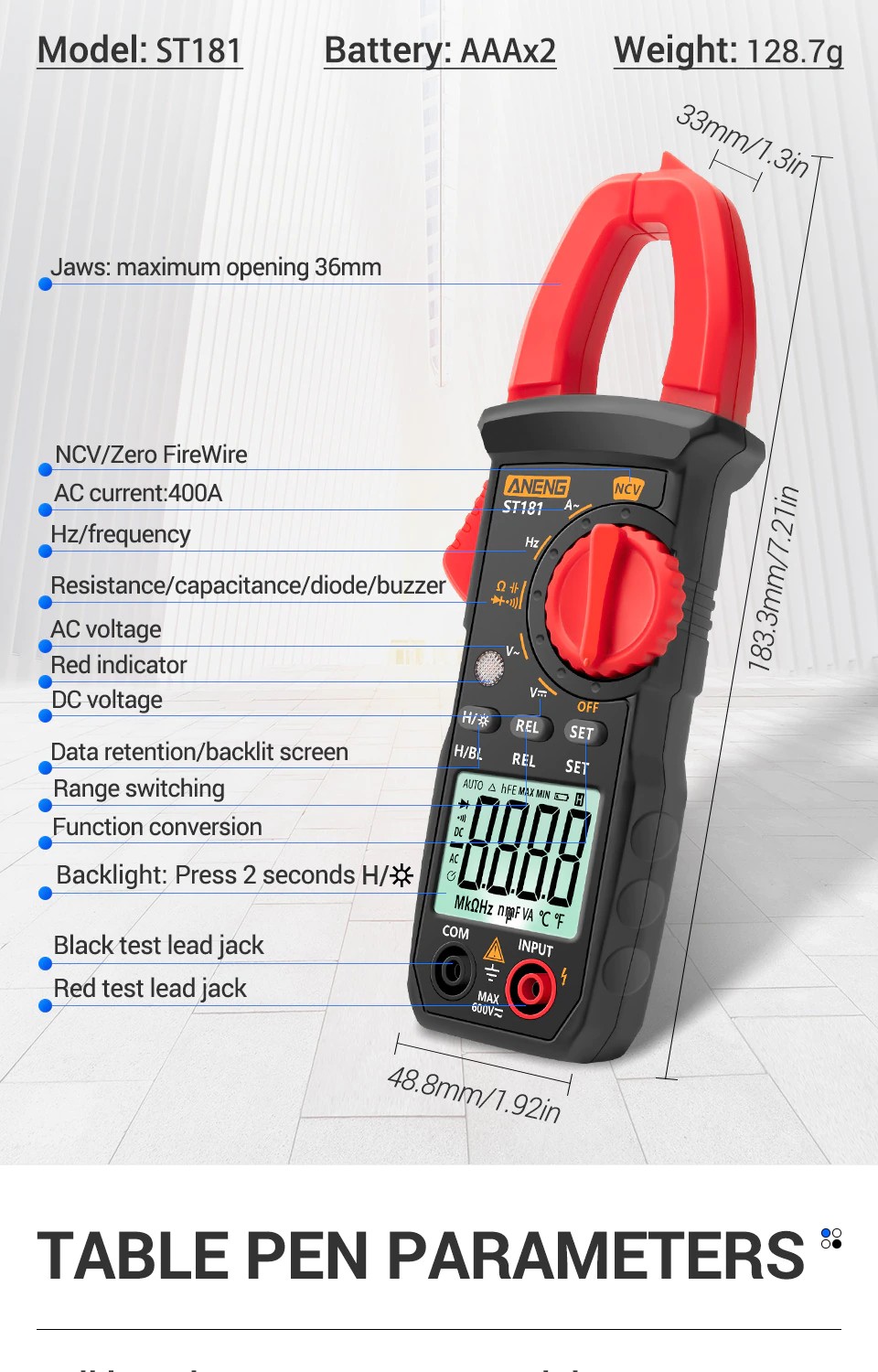 Aneng St181 Digitale Stroomtang Dc/Ac Stroom 4000 Counts Multimeter Amperemeter Voltage Tester Auto Amp Hz Capaciteit Ncv Ohm Test