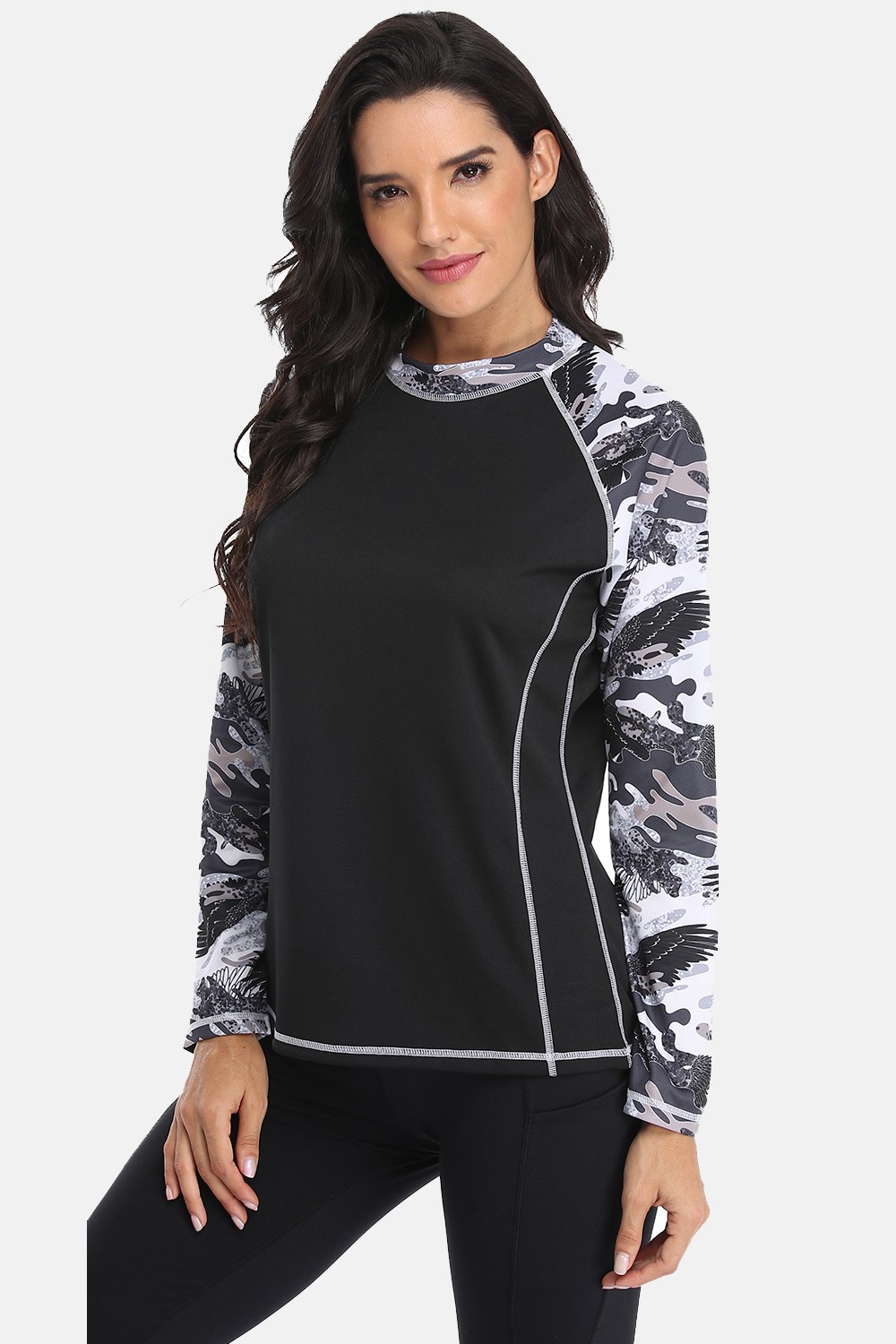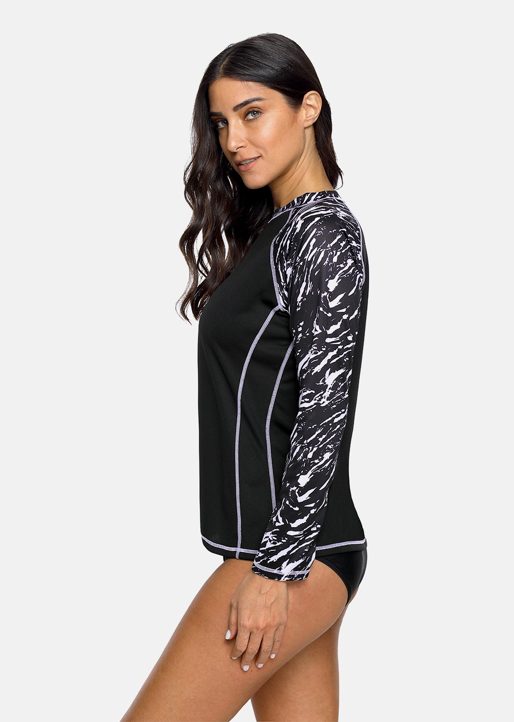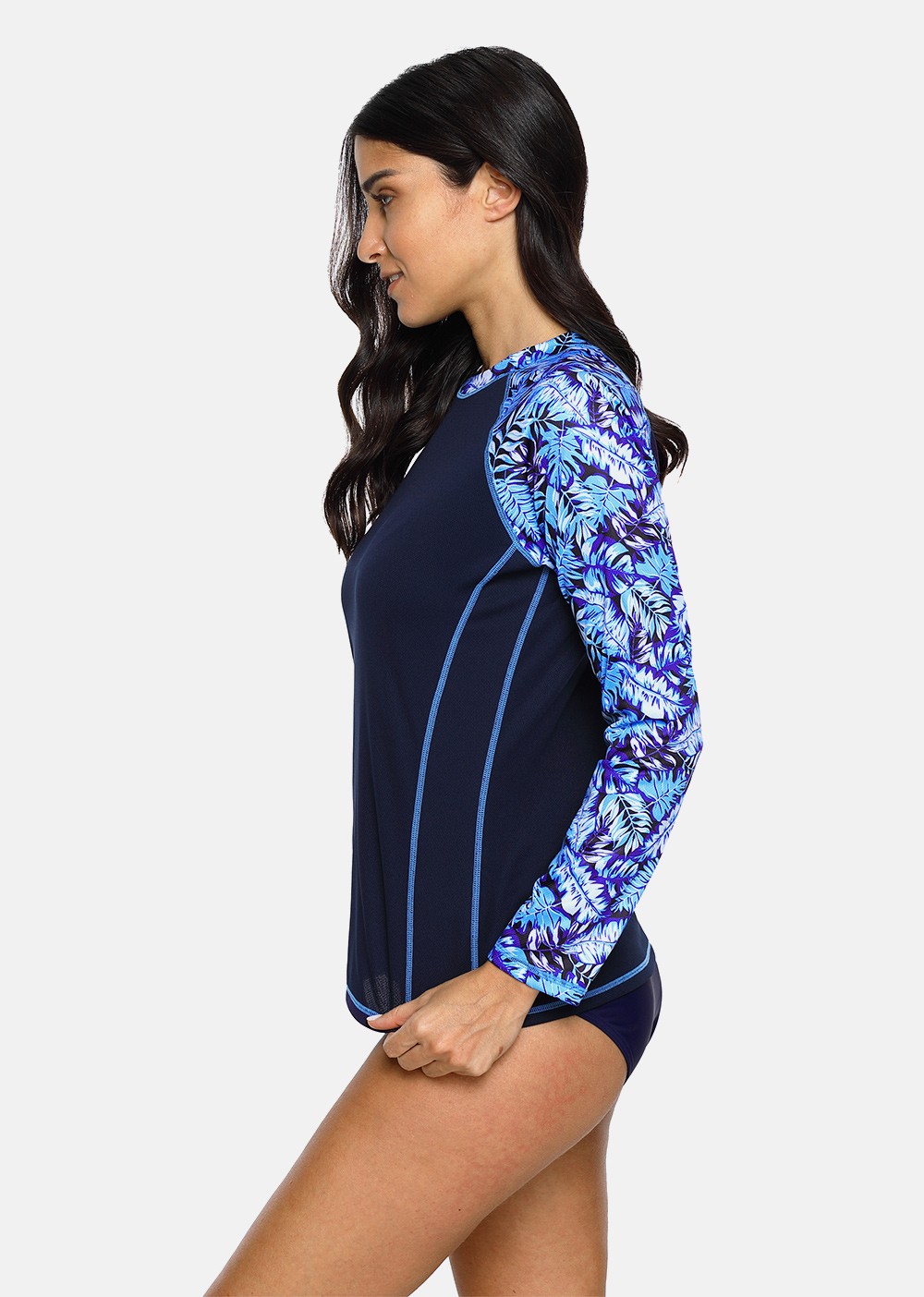 Anfilia vrouwen Lange Mouw Rashguard Retro Bloemenprint sneldrogende Shirt Surfen Top Wandelen Shirts Rash Guard UPF50 + T-shirts