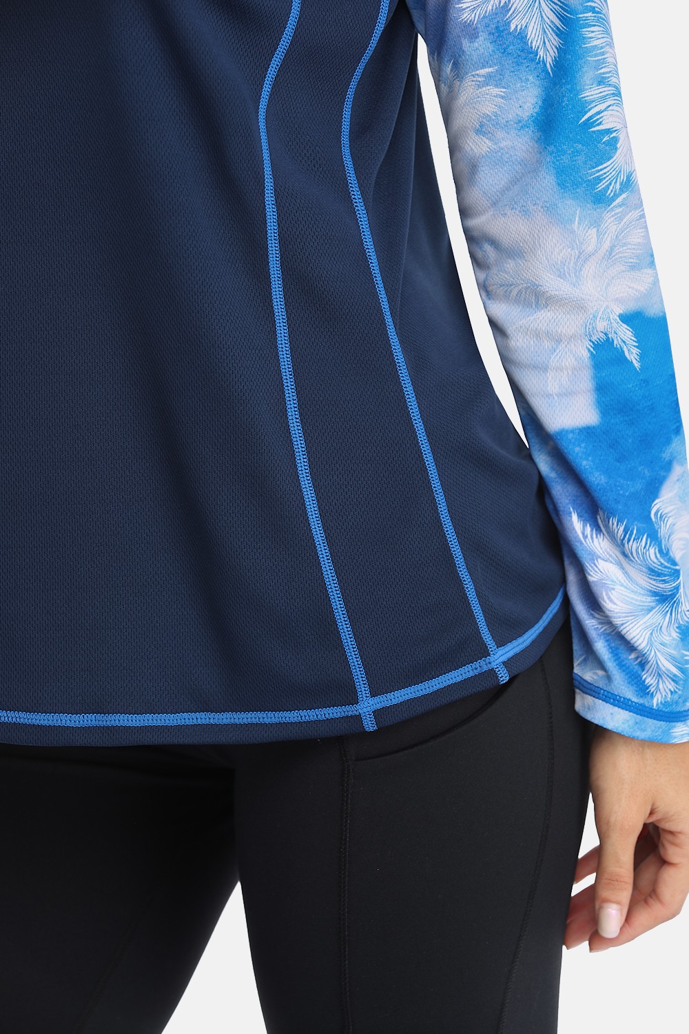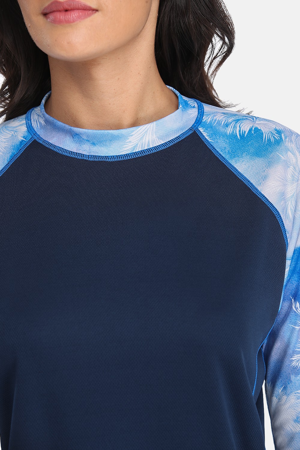 Anfilia Vrouwen Lange Mouw Rashguard Retro Bloemenprint Sneldrogende Shirt Surfen Top Wandelen Shirts Rash Guard Upf50 + T-Shirts