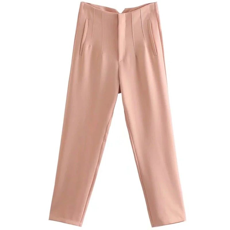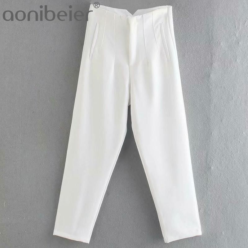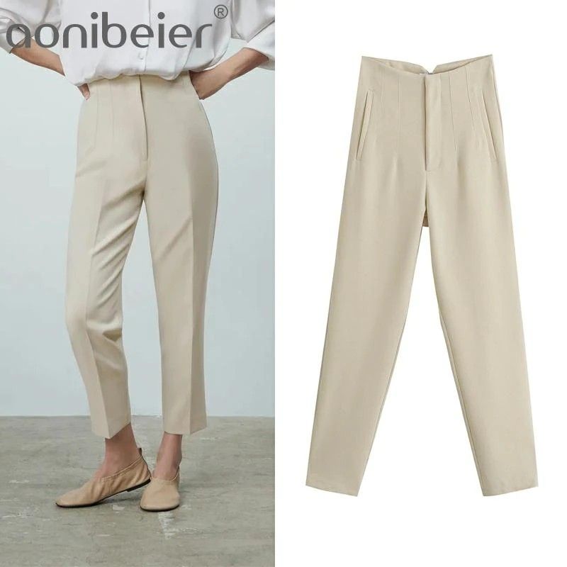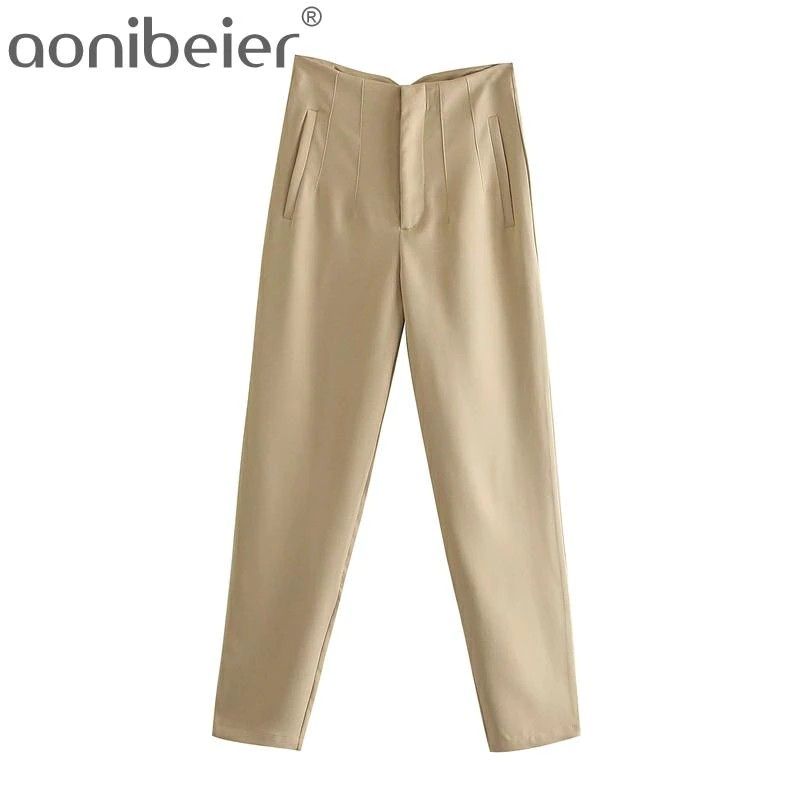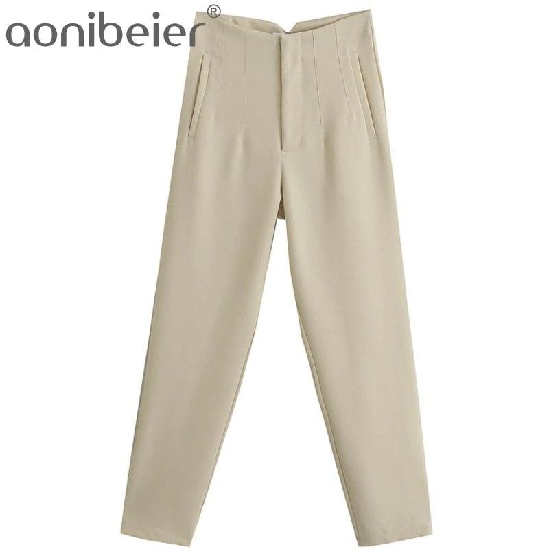 Aoni bier Za Nieuwste Vrouwen Lente Broek Verleden Hoge Waisted Broek Fashion Kantoor Lady beige Elegante Casual Famale Stright Broek