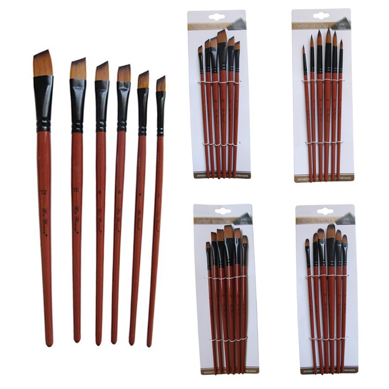Art Model Verf Nylon Haar Acryl Olie Aquarel Tekening Art Supplies Bruin 6 Pcs Schilderen Craft Kunstenaar Penselen Set