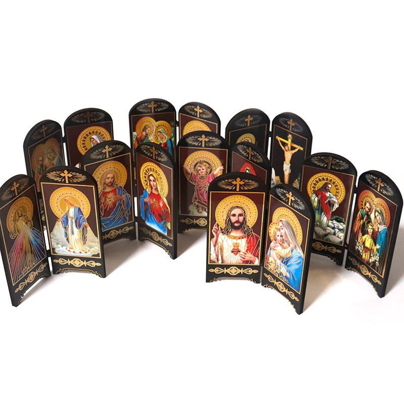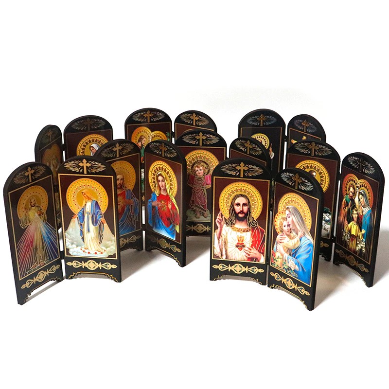 Articulos Religiosos Catolico Religieuze Figuur Icoon Dubbele Scherm Bureau Decoratie Jezus Christus Heilig Hart Virgen Maria Cijfers