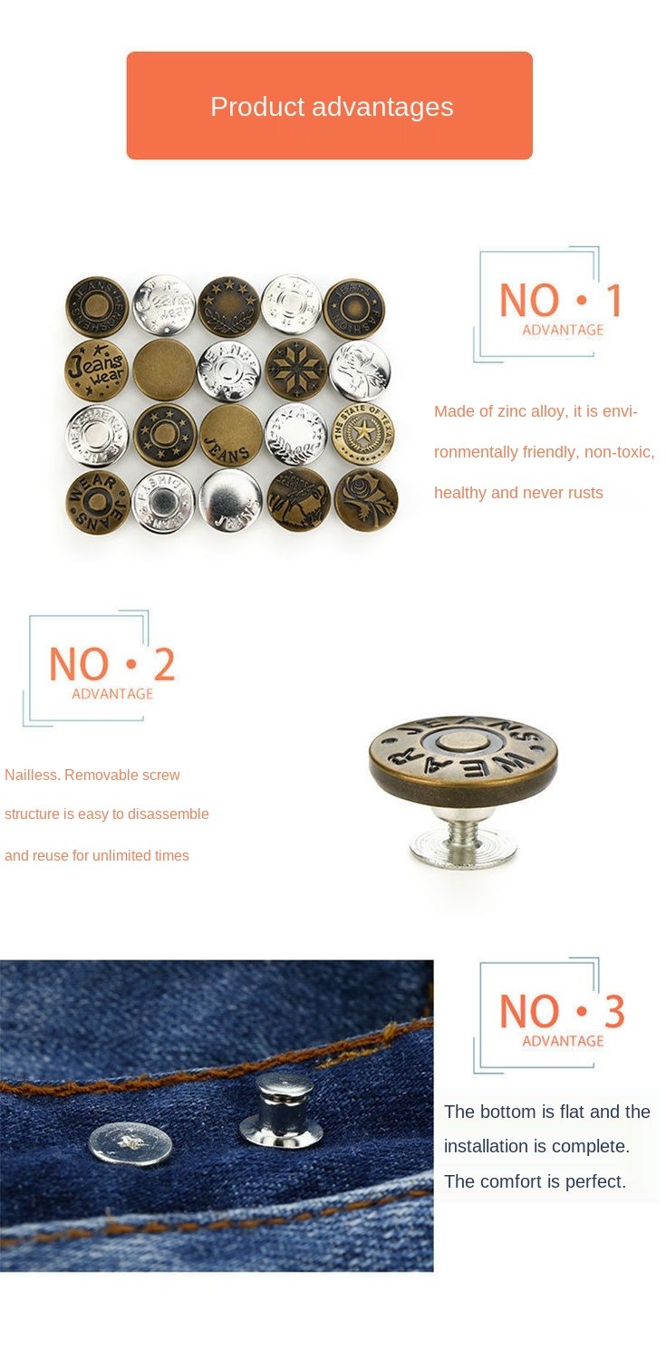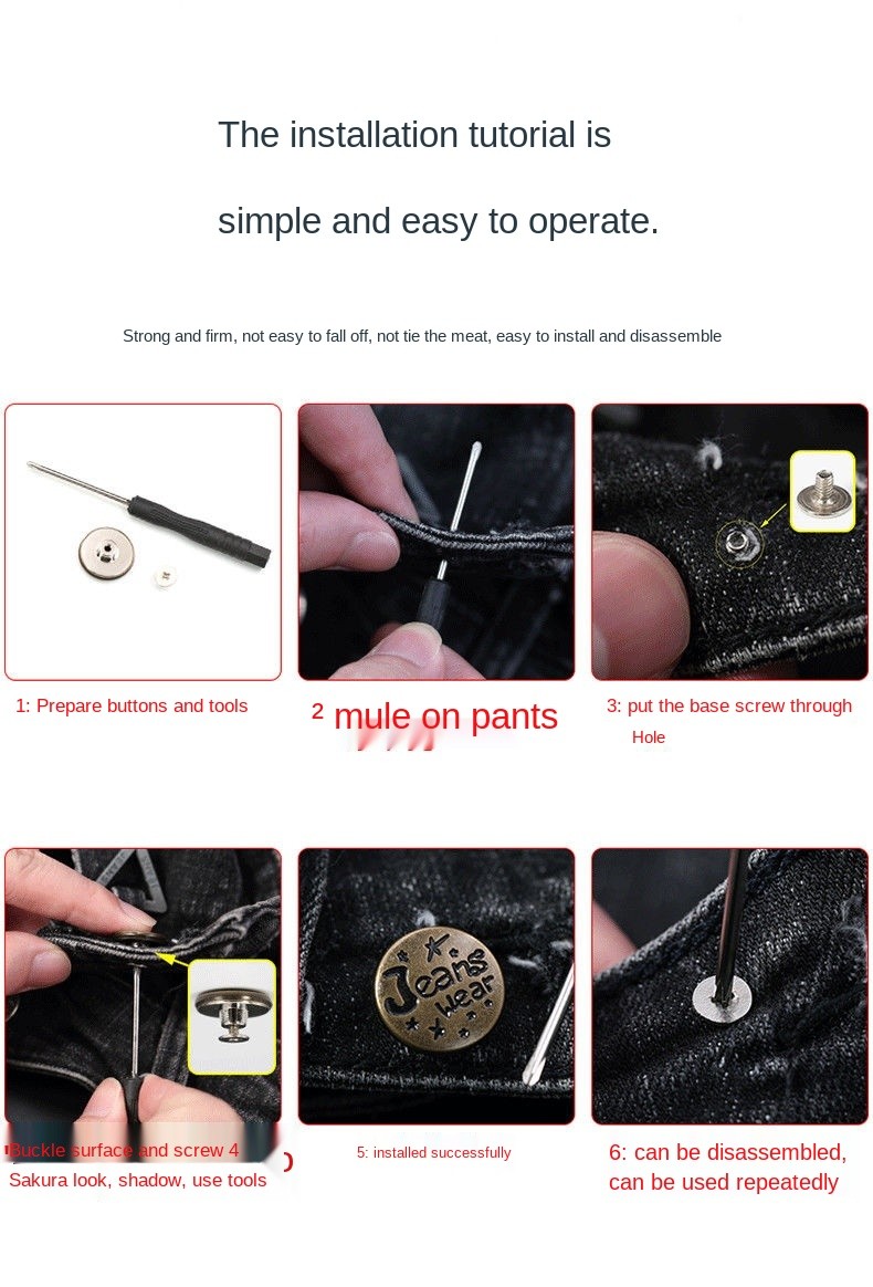 Deze knoppen met Unieke kaartslot ontwerp, kan niet vallen wanneer vast, en ze zullen krijgen geplakt voor een lange tijd. Verwijderbare en herbruikbare, waardoor herbruikbare gebruik. Deze jean knoppen zijn ook een uitstekende vervanging voor ontbrekende knoppen.