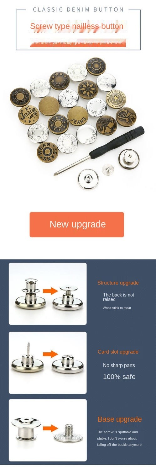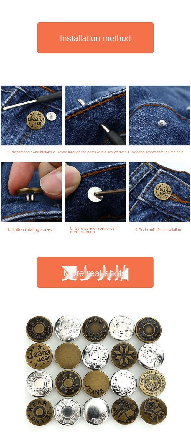 Artracyse 1/2/5/10 Stuks Van Naad-Gratis Jeans Legering Schroef Type Knoppen Nagel Gratis Taille Afneembare Verstelbare Taille Knoppen Sturen Gereedschap